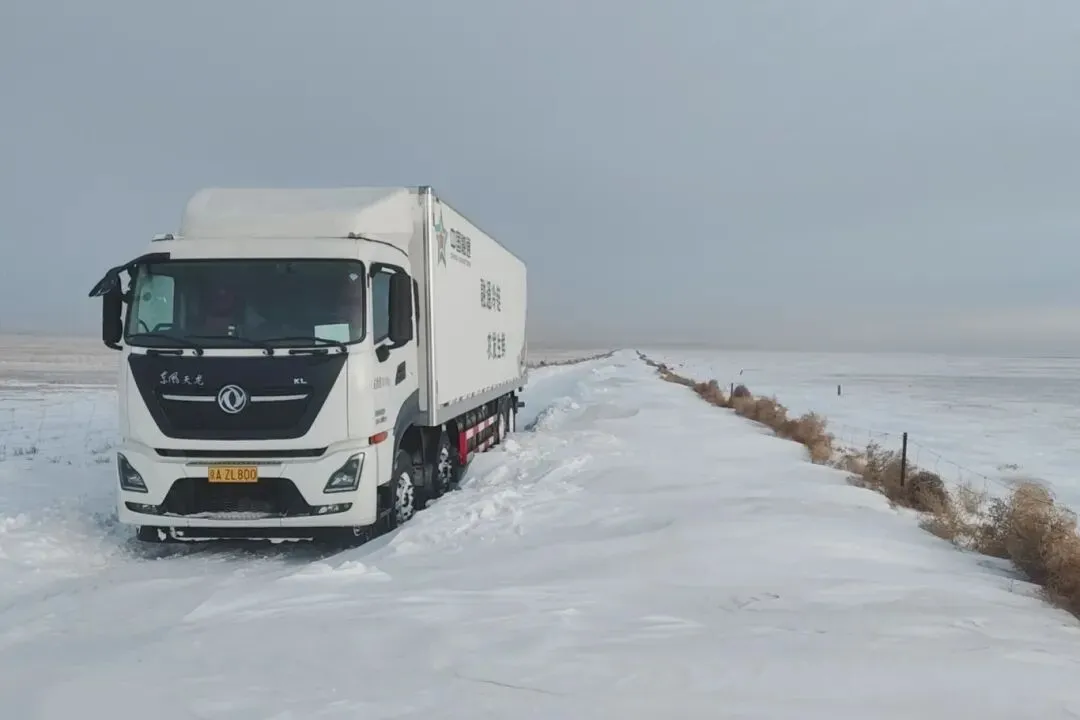 凌晨5点,惠钧内蒙古分公司配送中心灯火通明。4辆重型冷链车依次驶出,列队穿行于茫茫风雪之中,车身上“融通冷链 农发生鲜”的绿色大字,在白雪映衬下格外醒目。