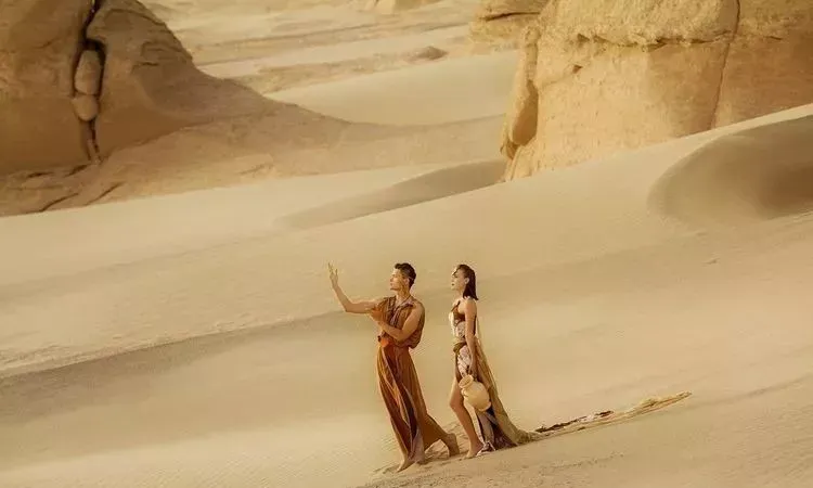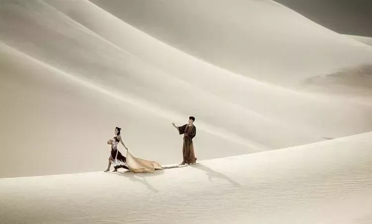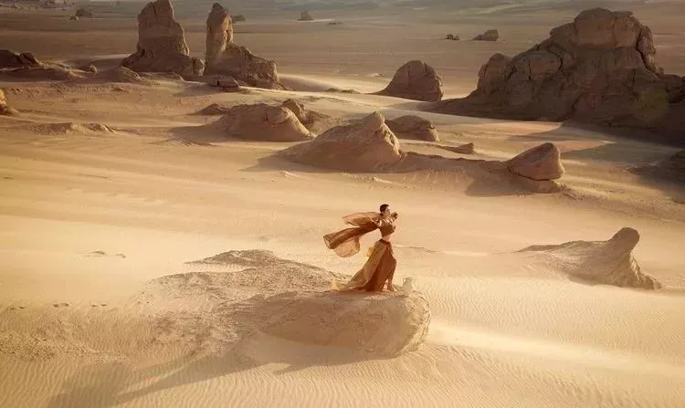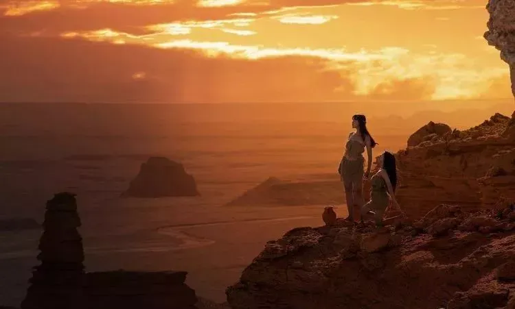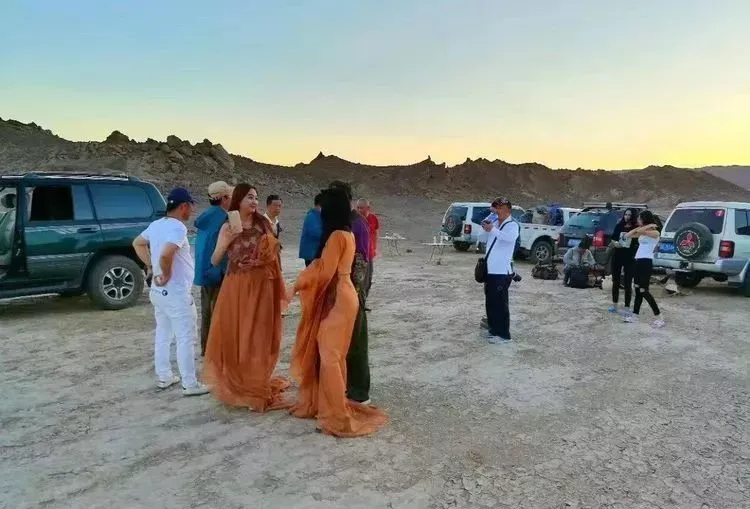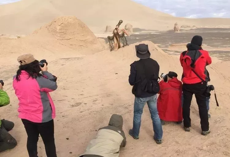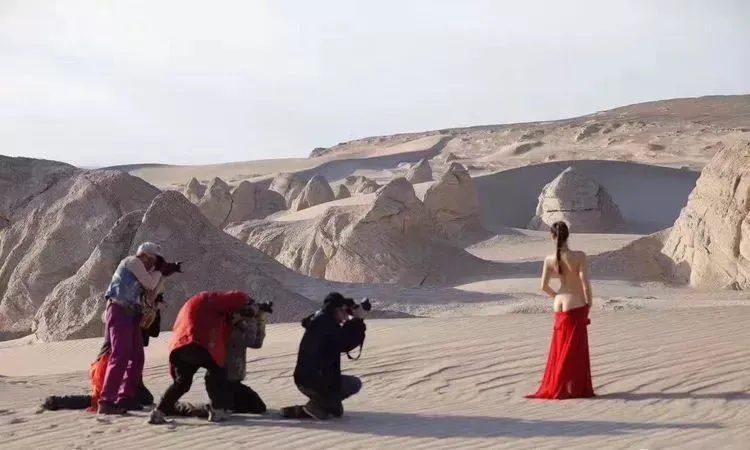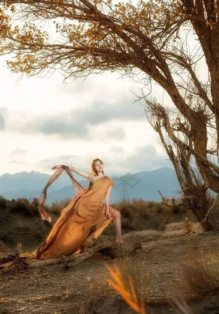 胡杨是另一种时间单位。活着一千年,死而不倒一千年,倒而不朽一千年。有人在枯死的树干旁按下快门,画面里红衣模特倚着三千年光阴,像一滴新鲜的血滴进化石。你忽然明白,不是人在拍摄风景,是风景在收容人——收容我们对永恒的贫乏想象。