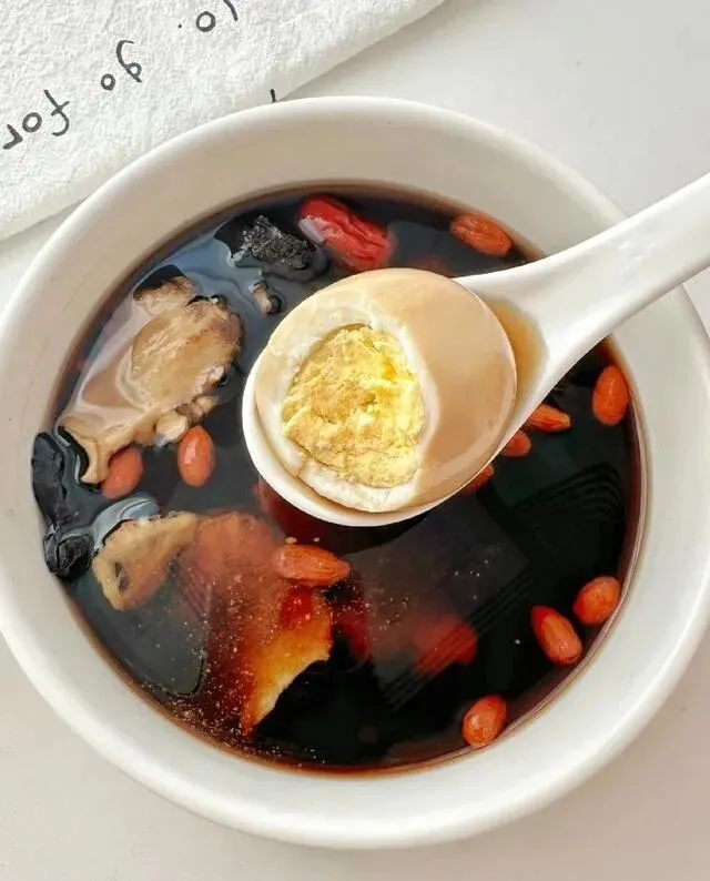 喝汤吃蛋 , 我个人会加点红糖 , 甜甜的更好入口~