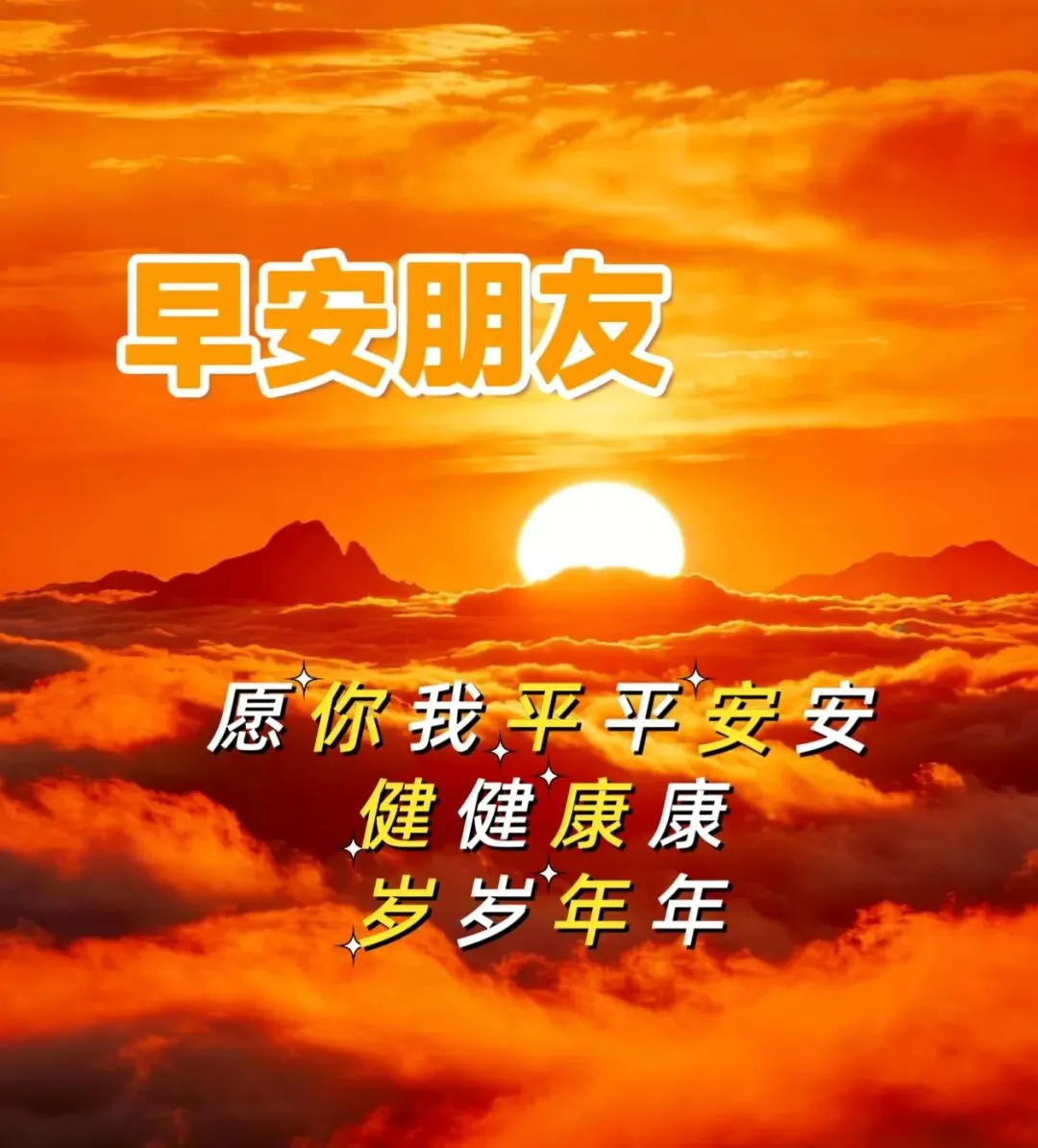 🌅🤝🌿每个清晨都含吉祥气,每句问候都载安康愿。愿我们历经沧桑,眉眼仍带笑。看庭前花开花落,望天边云卷云舒,平安幸福长相伴,福寿无疆!早上好!🥳🍎✨