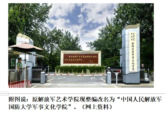 ③中国人民解放军艺术学院历任政委:刘志坚/田学诚/魏风/沈永权/乔佩娟/范迋宇/殷宝洪/谢立宏/李永龙/孙健/董斌。