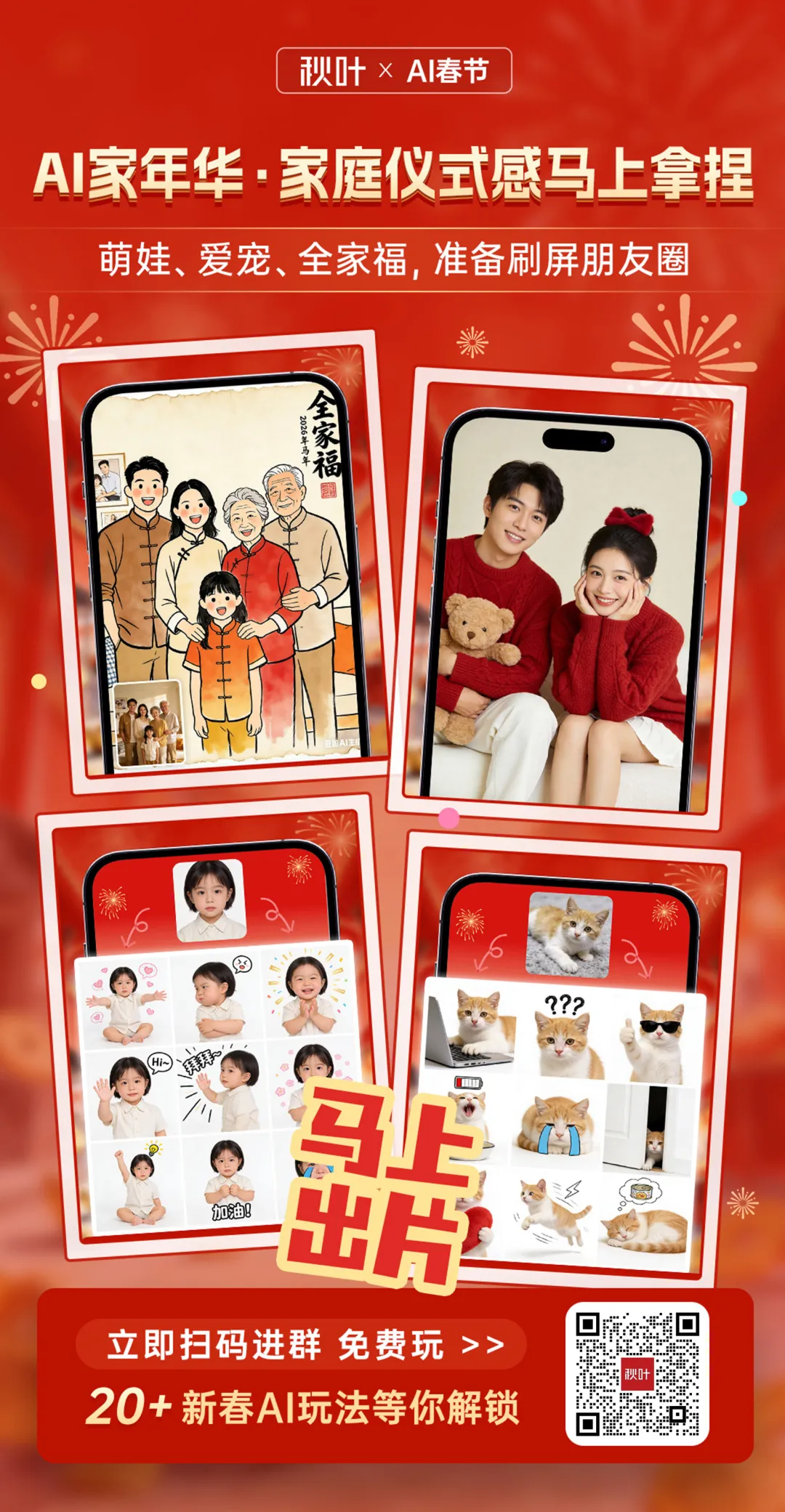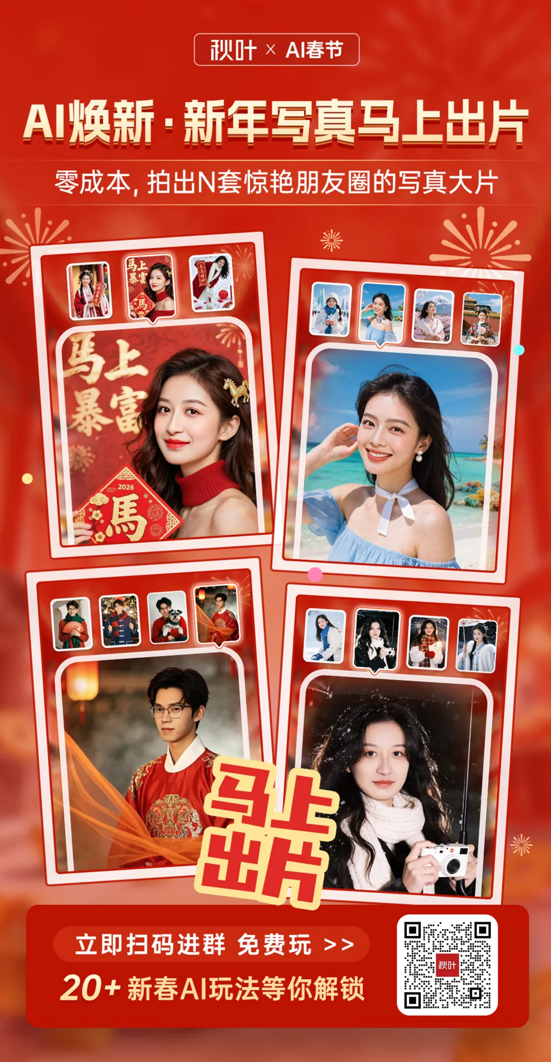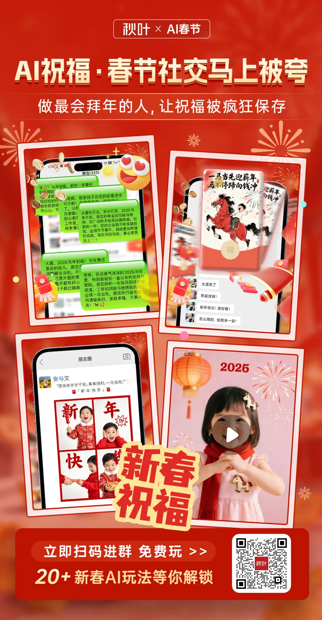 今年我们更是一口气给大家准备了 20+ 新春 AI 玩法,扫码进群即可解锁,做朋友圈中最拉风的人