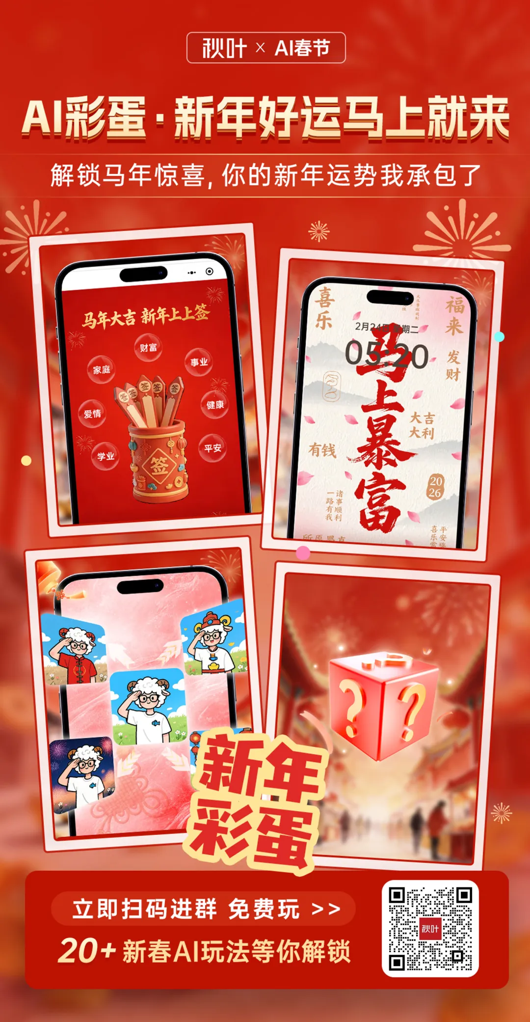 还有趣味新年签、壁纸、头像装饰,你的新年运势秋叶 AI 全包了!