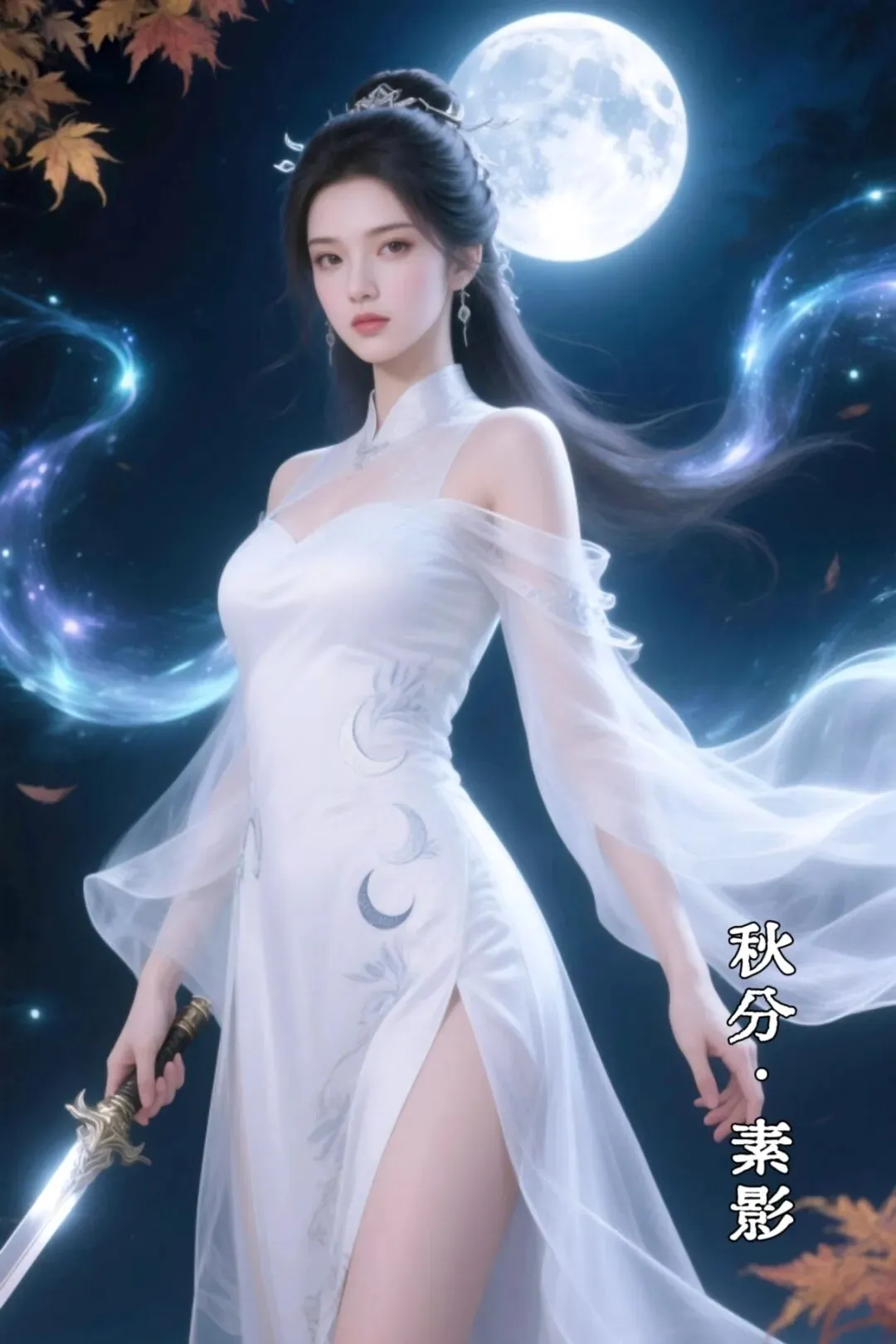 她手中所持秋分剑,乃是秋分节气所化的灵韵法器。剑身莹白如玉,清冽如霜,能清晰映照出天上月亮的阴晴圆缺,随月相变化流转不同光华。持剑轻挥,便可随心调节人间月光的清辉,让秋夜更显明亮柔和,为晚归之人、夜行之物铺就一路清光。