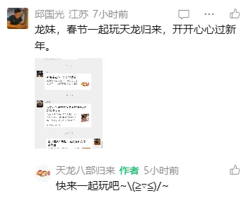 只需点赞本文分享到天龙游戏群(20人以上),将截图私信发送给龙妹,并在评论区留下您想说的话,即可参与《天龙八部·归来》游戏礼包码抽奖,共抽取10个!快快参与吧~