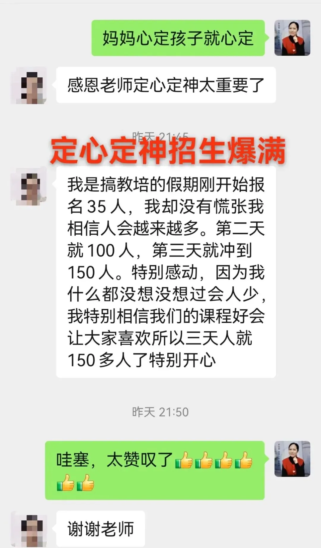 当前位置:首页>美女资讯>定第62位逆袭女神,定心定神20天,培训机构从35人涨到150人,轻松显化6万收入!