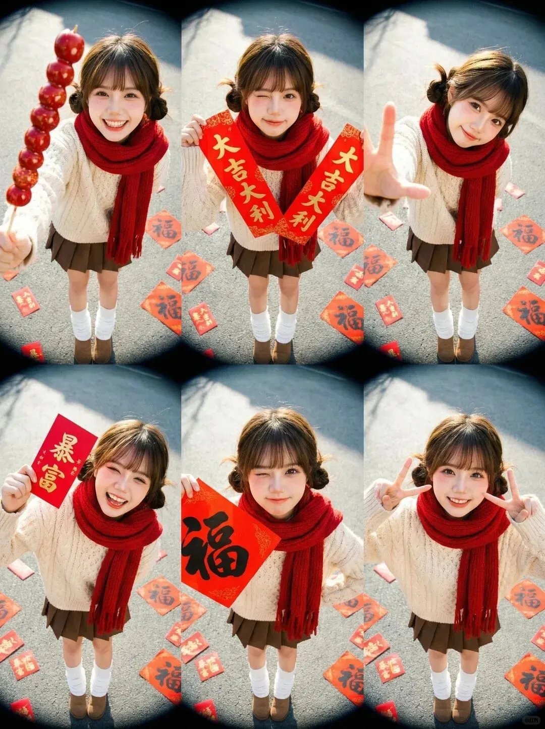 当前位置:首页>美女资讯>0元挑战 春节过年的新年写真6宫格【豆包ai口令】