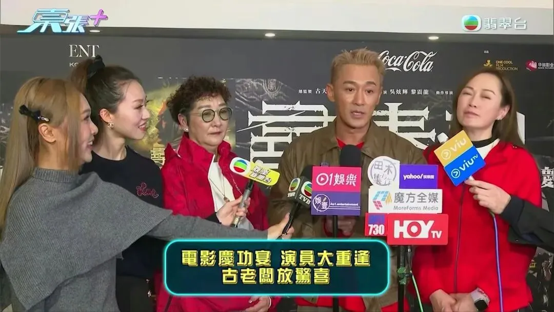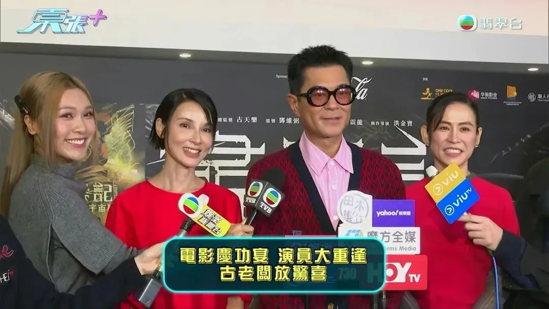 TVB當日於慶功宴上,分別派遣麥詩晴(左一)與謝淑怡(左二)進行採訪。(東張+影片截圖)