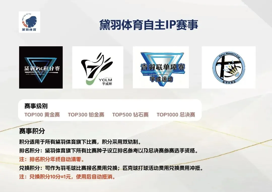 春意渐浓,羽球飞扬。2026年黛羽体育羽球三大杯赛迎来全面升级——积分制重磅落地!不仅可以用积分排名,更可兑换现金抵扣后续参赛费用全国独家首创,只为热爱羽球的你。