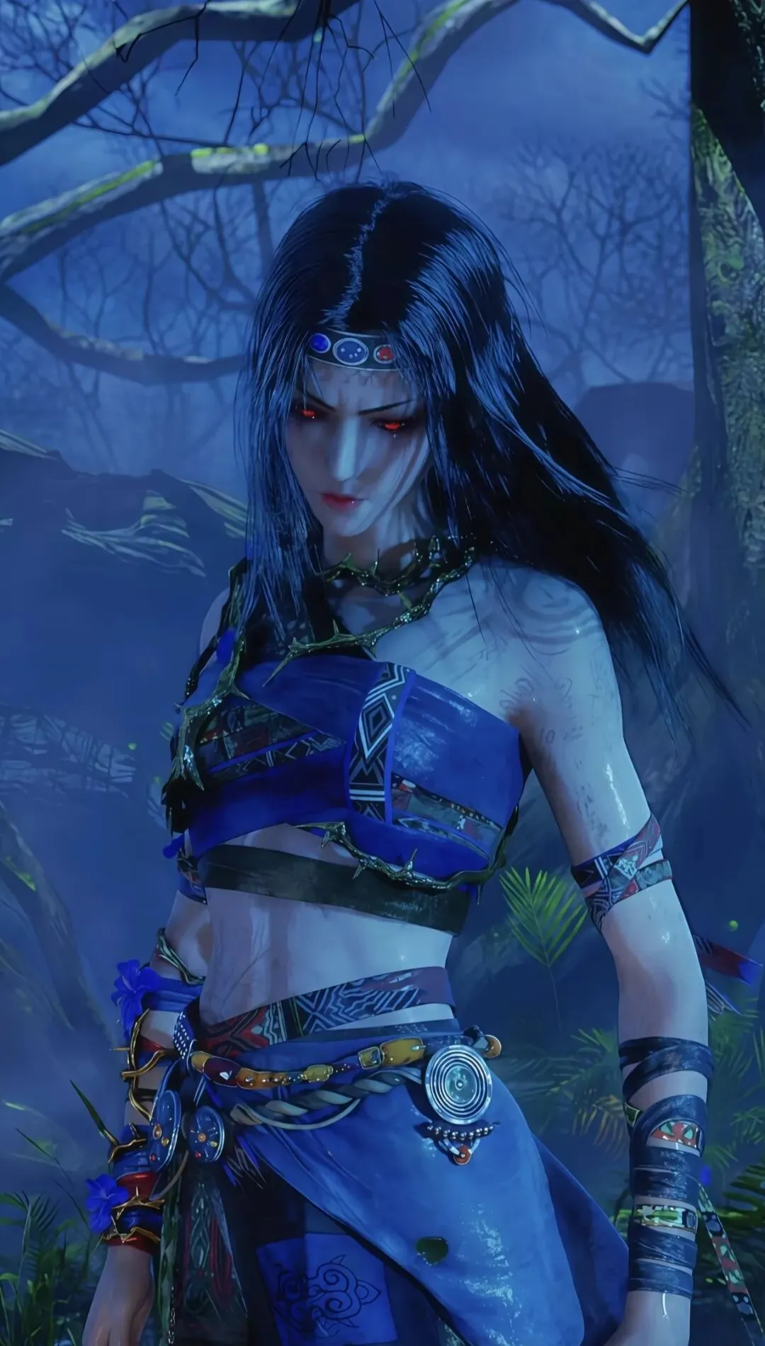 她戴上那副比她脸还大的古朴面具,独自站在鬼疫横行的废墟前,身后是战死的族人,身前是无穷无尽的黑暗,她没有退路,这一守就是一千年,千年是什么概念?是看着沧海变桑田,是目送每一代故人老去、离世,是自己永远停在少女的模样,不老不死与世隔绝,面具赋予她堪比神明的力量,也剥夺了她作为人的资格,她不再是“人”
