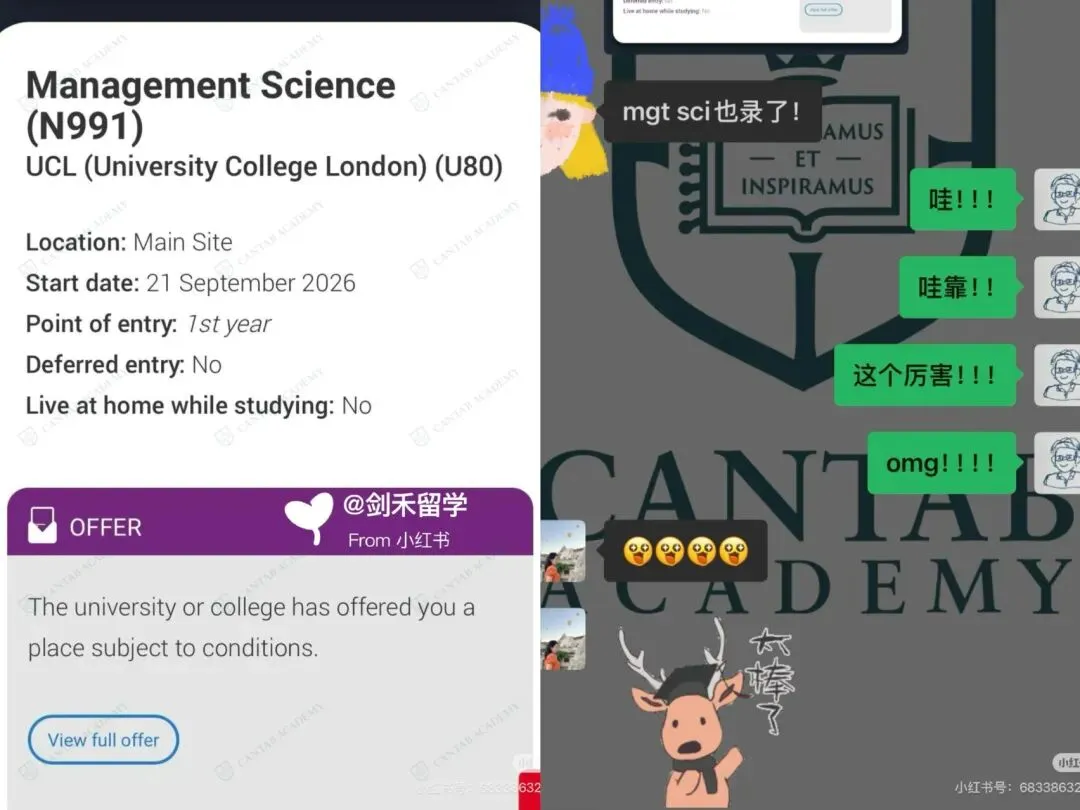 恭喜来自南外的J同学收获心仪的UCL大热高难度商科Management Science录取!