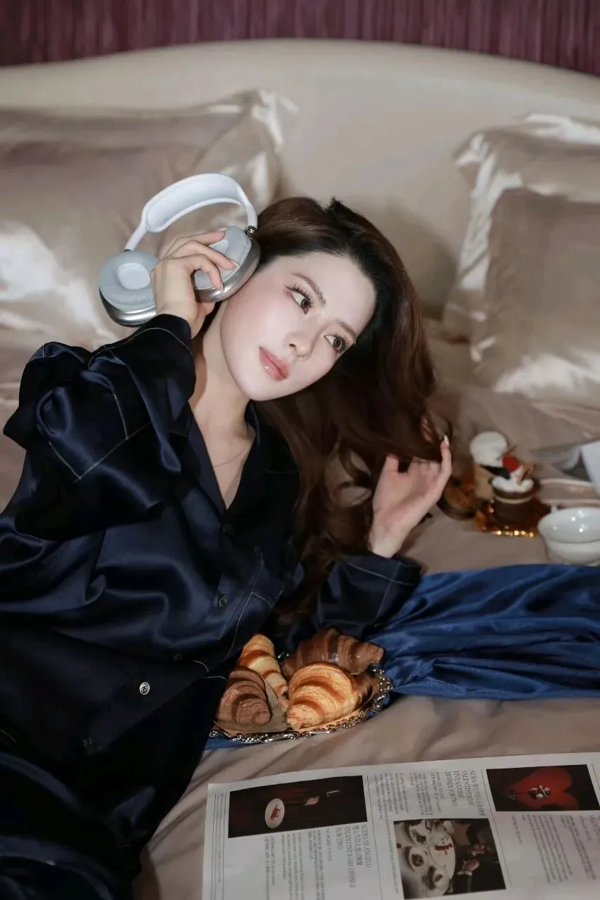 在酒店的套房里,阿尔忒弥斯美伢的这组睡衣写真,打破了人们对“居家穿搭”的刻板印象。没有刻意的性感,没有夸张的摆拍,她只用一套深蓝色丝绒睡衣,就把松弛感和高级感完美融合,让人忍不住感叹:原来美,也可以这么不费力。