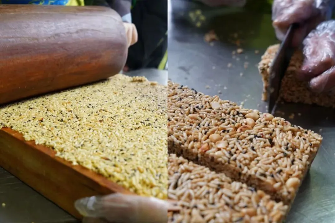 炒米—熬糖—加入食材—搅拌压模—定型切块,每完成一步就离美食更进了一步。