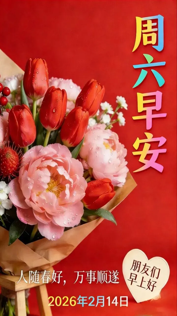 当前位置:首页>美女资讯>2026年2月14日星期六早上好图片,最新周六早安漂亮动态图片,周六祝福语精选.