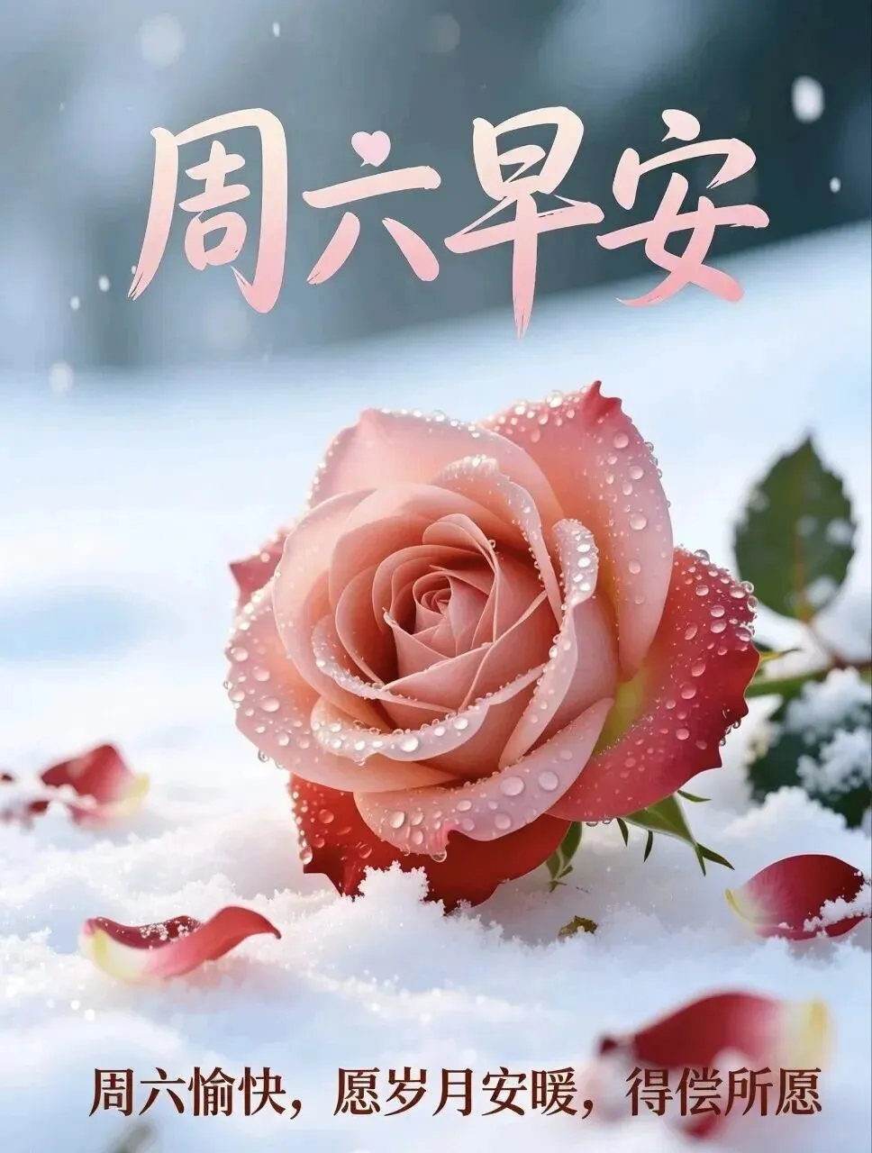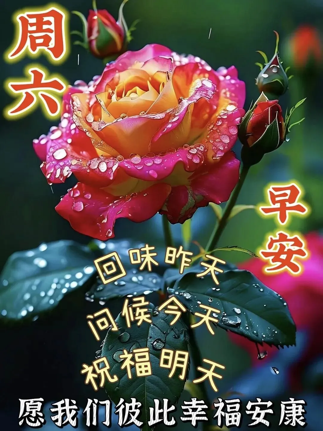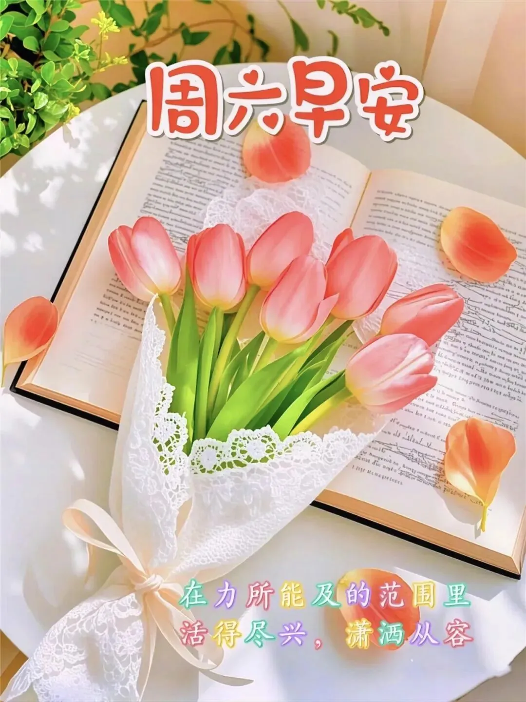 清晨问候送上🌅,周六愿你轻松又自在🌿。岁月温柔以待,万事皆可期待🌈,烦恼远离,幸福靠近💐,平安健康伴一生,好运连连不中断🥳。