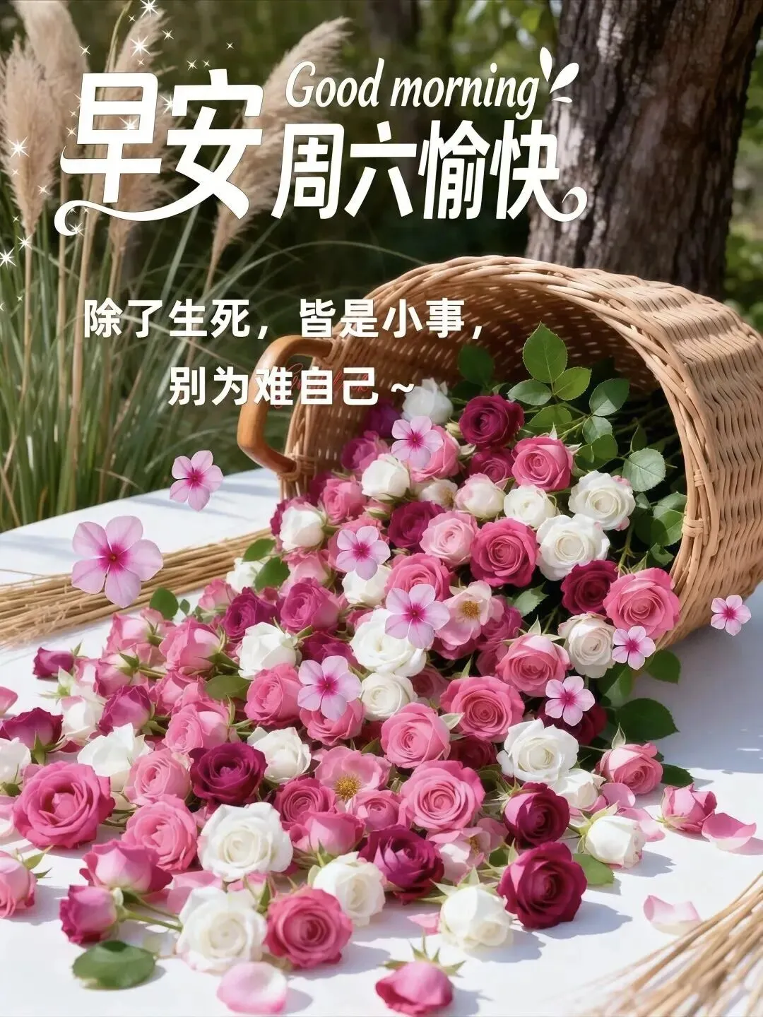 早安☀️!周末周六,惬意开启☕。愿你无忧无虑,自在欢喜🌿,阳光洒满心房,好运常驻身旁🌟,健康平安永相伴,幸福生活乐无边💐。