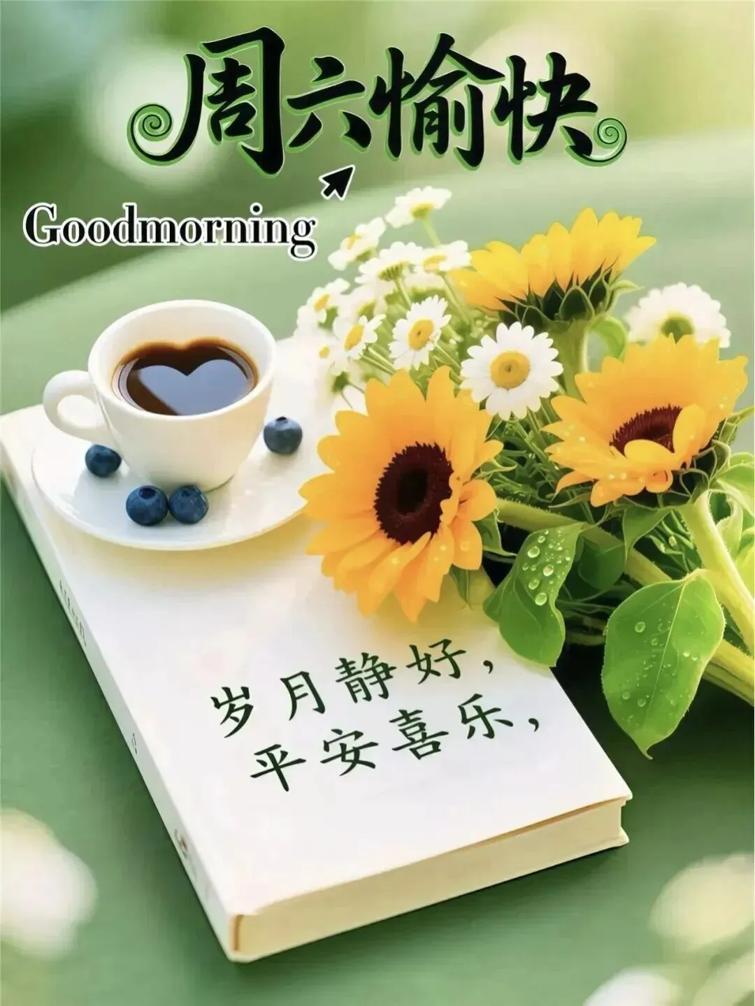 周六早安☕,阳光正好,微风不燥🌤️。愿你放下忙碌,享受悠闲时光✨,心中有光,眼里有笑😊,健康平安,福气满满🍎,生活处处是惊喜,快乐永不缺席🌟。