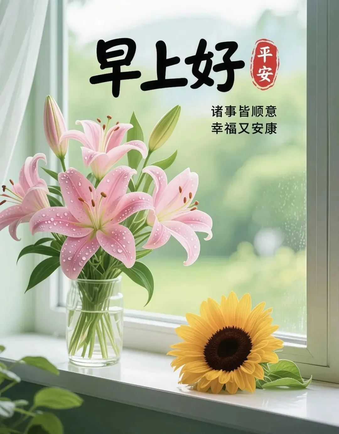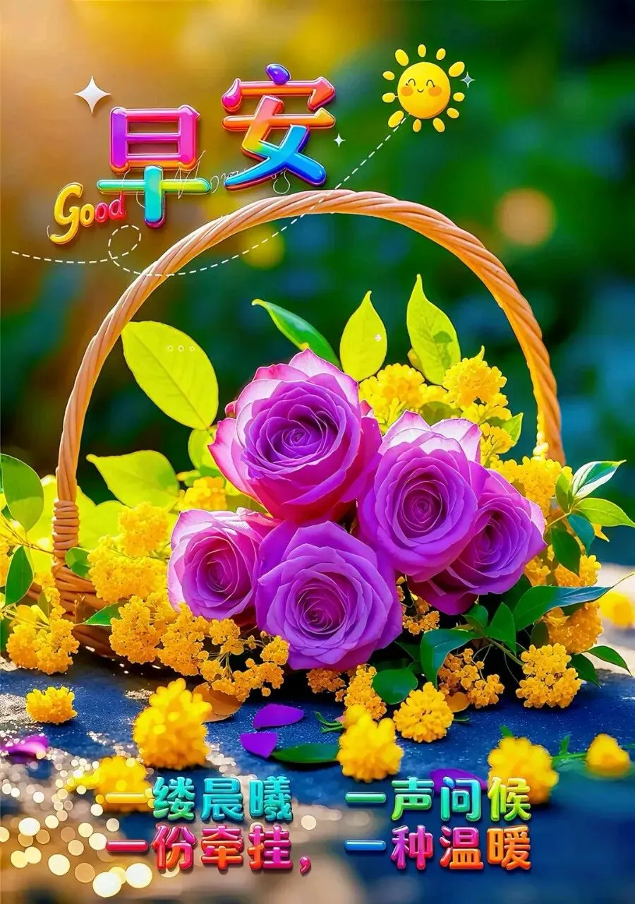 早安呀🌞!周六送上最真的祝福✨,愿你生活安稳,事事顺心💐,健康常伴,好运不停🌟,心中常存欢喜,日子温柔又闪光🥰。