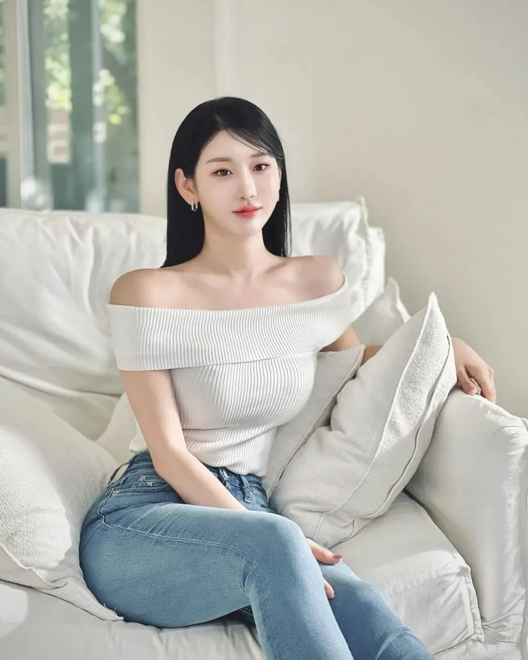 其次是腰臀结构。她的腰部收紧感明显,配合饱满但不过分夸张的臀部线条,整体曲线非常自然。这类形体往往离不开深蹲、臀桥等基础力量训练,同时也需要较好的拉伸和恢复。