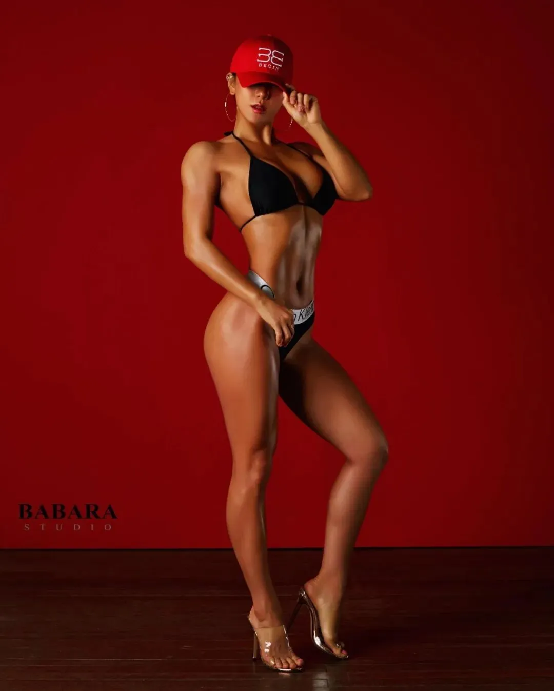 腿部方面,她并非追求“极细腿型”,而是偏紧实、有张力的大腿和修长的小腿线条。这种腿型在运动型模特中非常常见,也更符合实际训练后的身体变化。