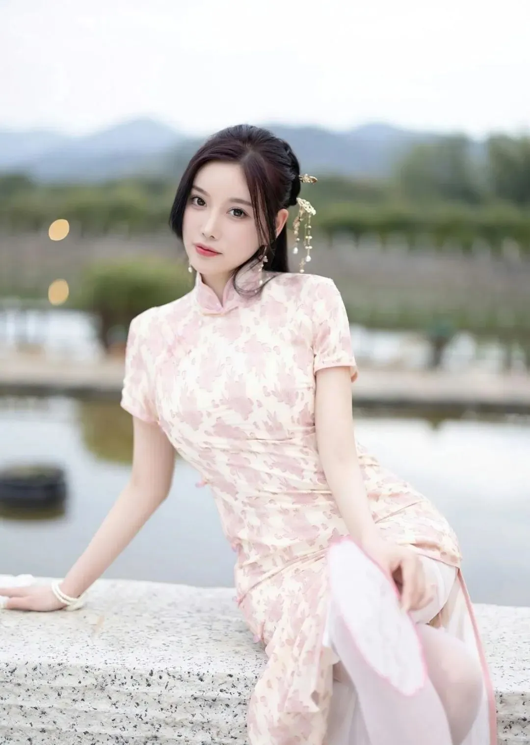 当前位置:首页>美女资讯>美女模特身穿一袭碎花旗袍搭配白色丝袜,撑起整个春夏的浪漫,感受春夏色彩