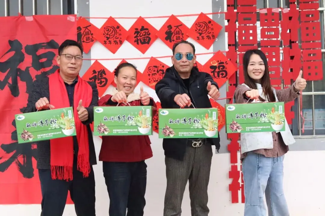 春节前夕,武宣县二塘镇特色农产品洋芋粉批量上市,迅速成为年货市场的“黑马”。2月13日,一支由二塘镇干部、麻碑村“两委”成员组成的“农民模特队”在麻碑村闪亮登场,他们肩扛手提、花式走秀,免费为本村生产的洋芋粉代言,助力本地特色产业抢占新春市场。