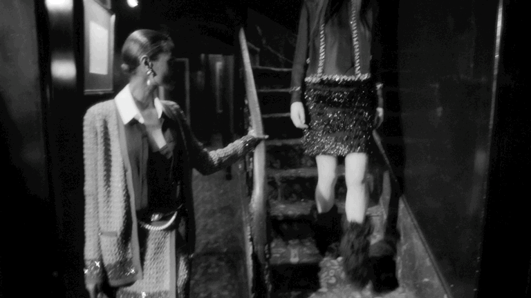 模特们把外套留在衣帽间,转身去楼上换装,就像一群好朋友一起举办派对一样。看视频的时候编辑觉得恨不得也参与到里面一起玩。
