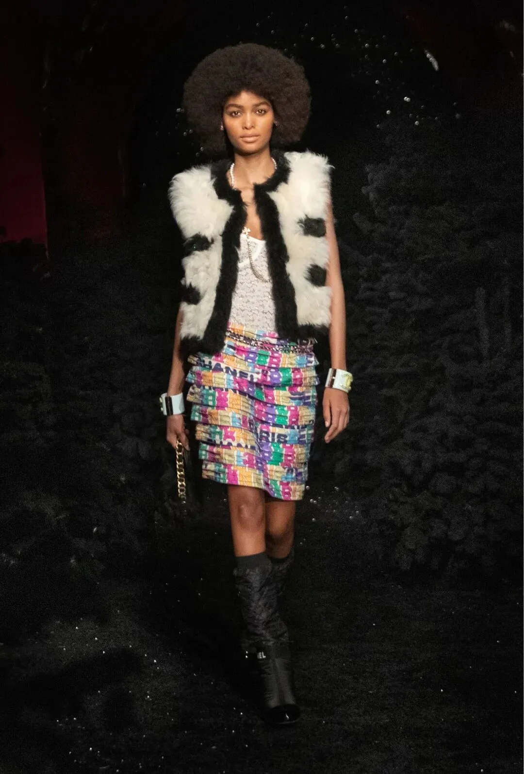 所以发布会来之前,品牌也请到了摄影师双人组Inez & Vinoodh一起做了许多创意。比如这张拼贴画,就把很多有对比感的香奈儿元素都组合在一起。