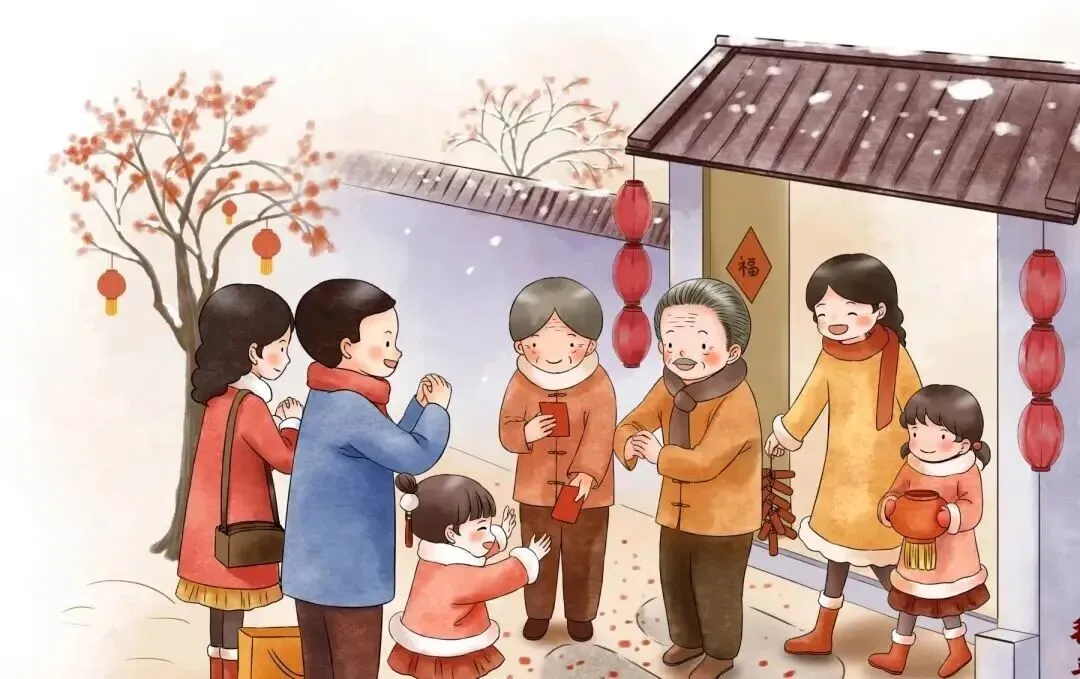 正月初二一大早,父母早早就催促我们姐弟四人起床了。早饭一吃,父亲肩头扛着老巴子妹妹,母亲提着备好的年礼,我和姐姐弟弟跟随其后就出门了。父亲的脚步走得很快,还不时地吆喝着我们,把脚步放快些,因为到了九点左右,路面上温度一高就开始化冻了。