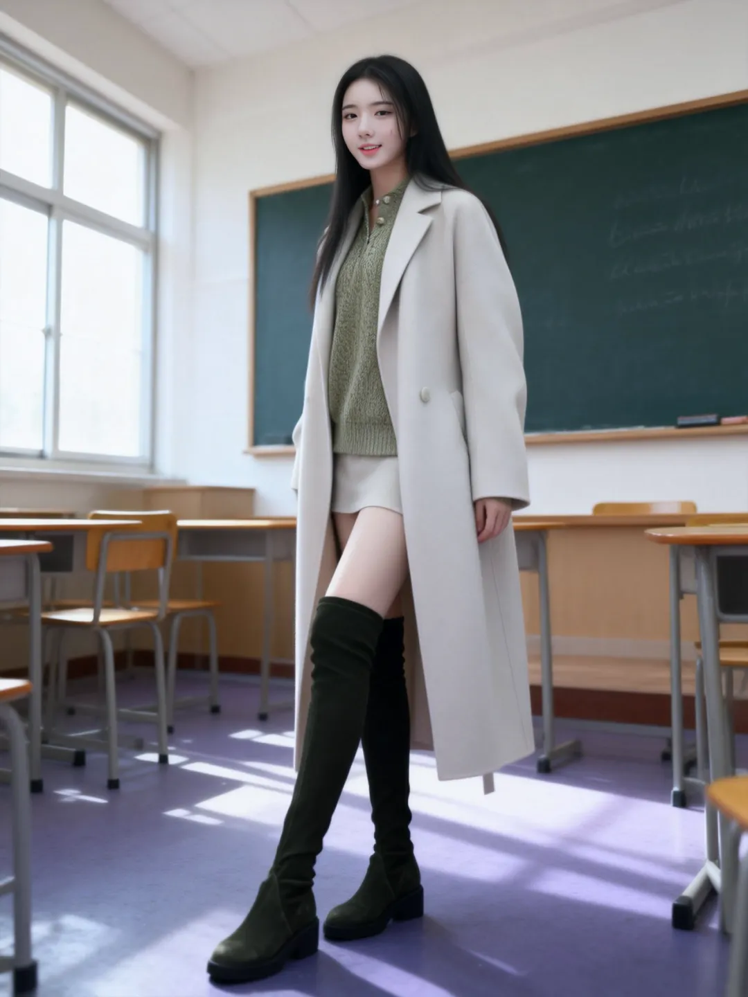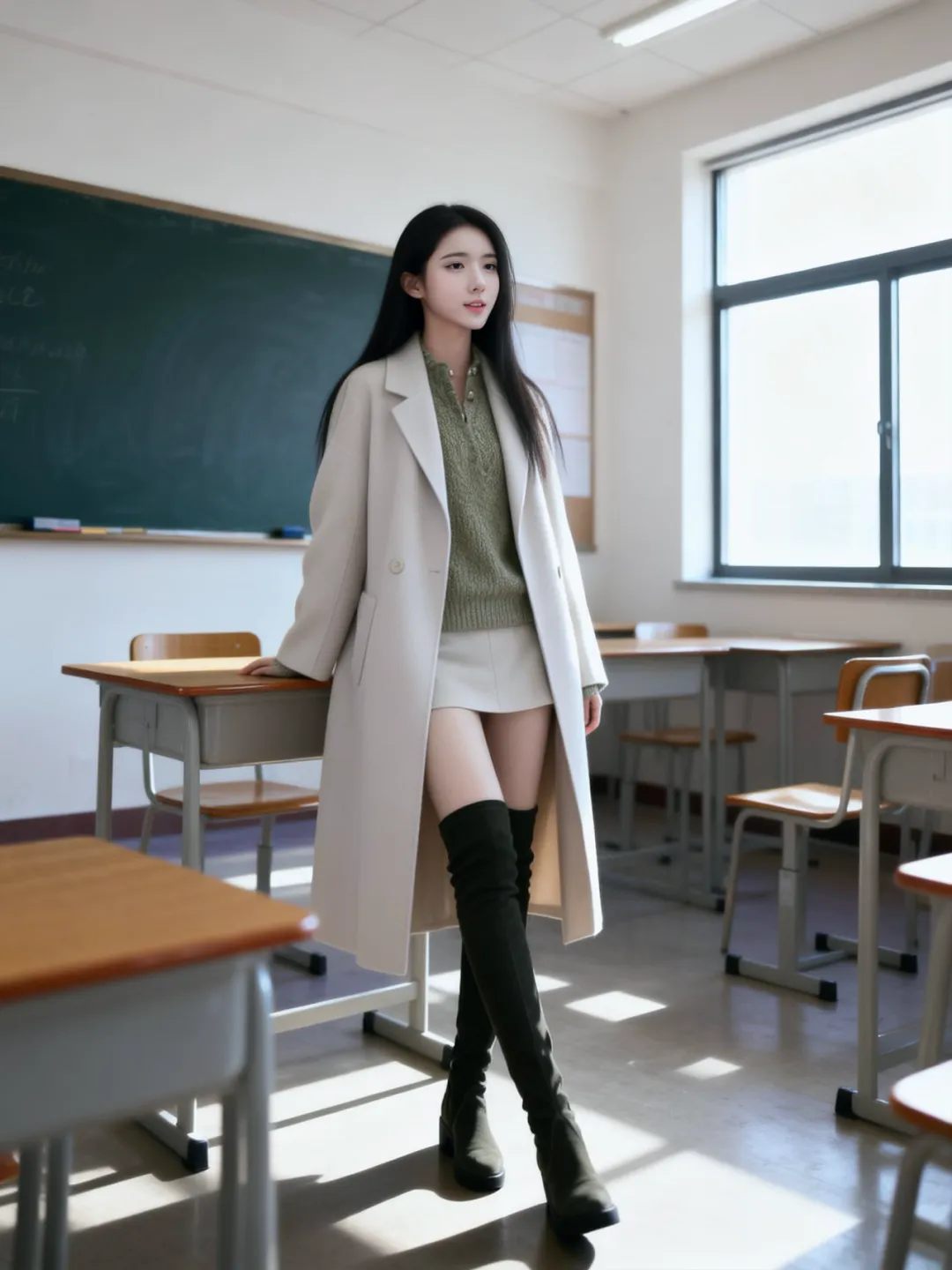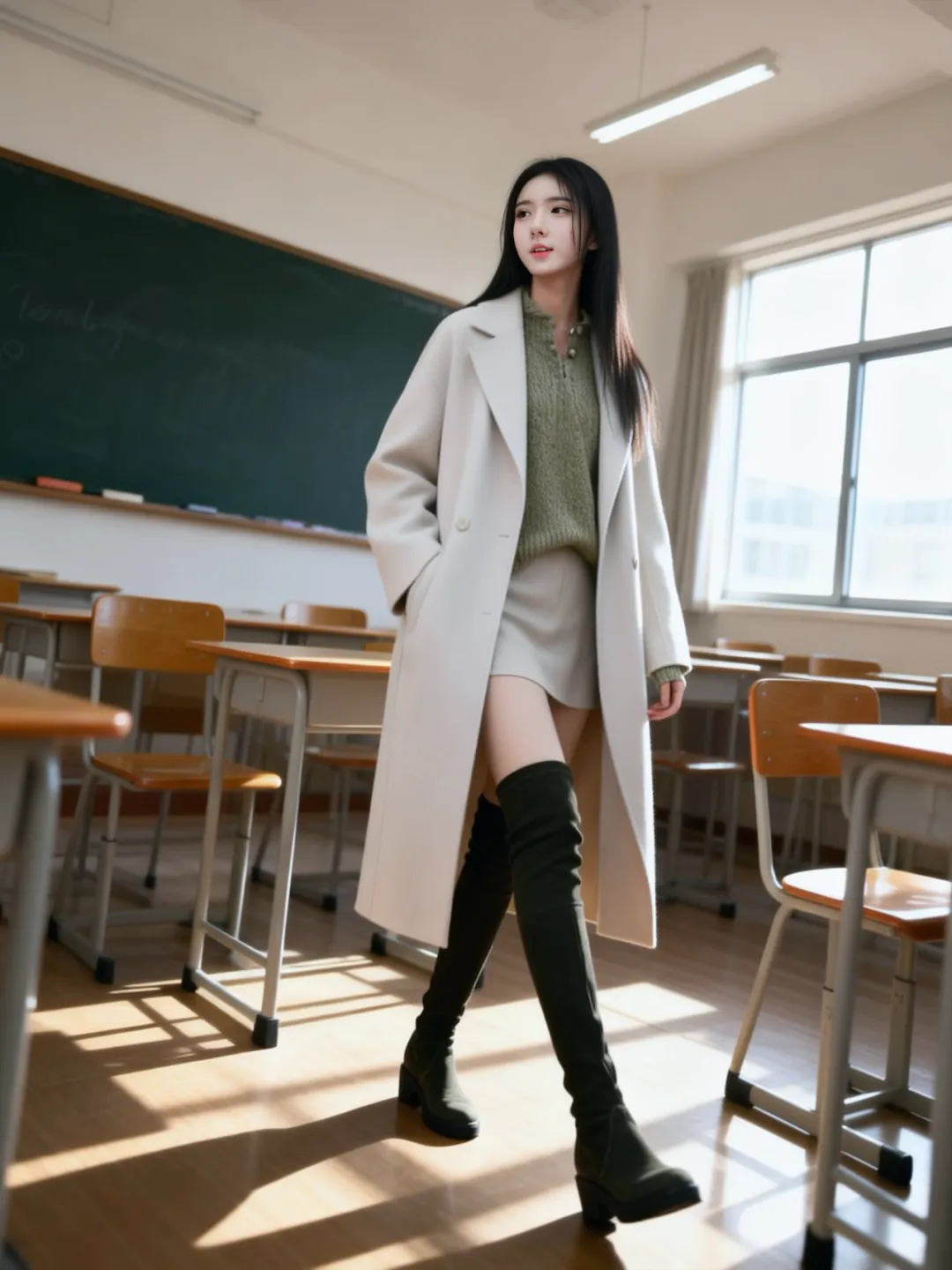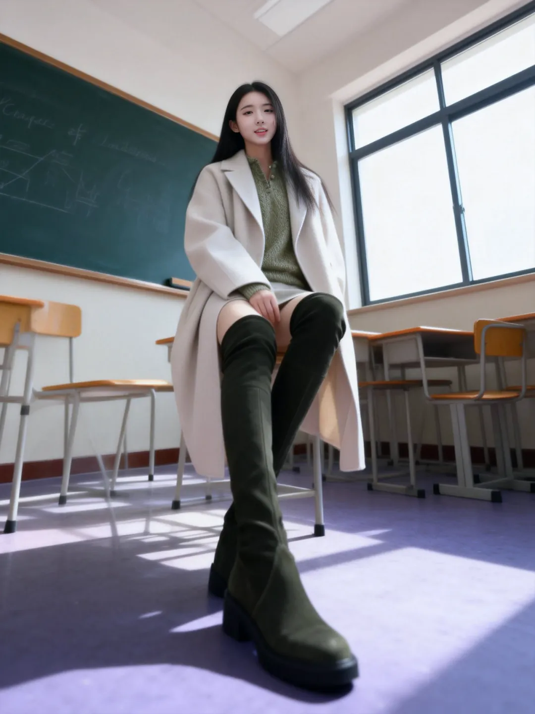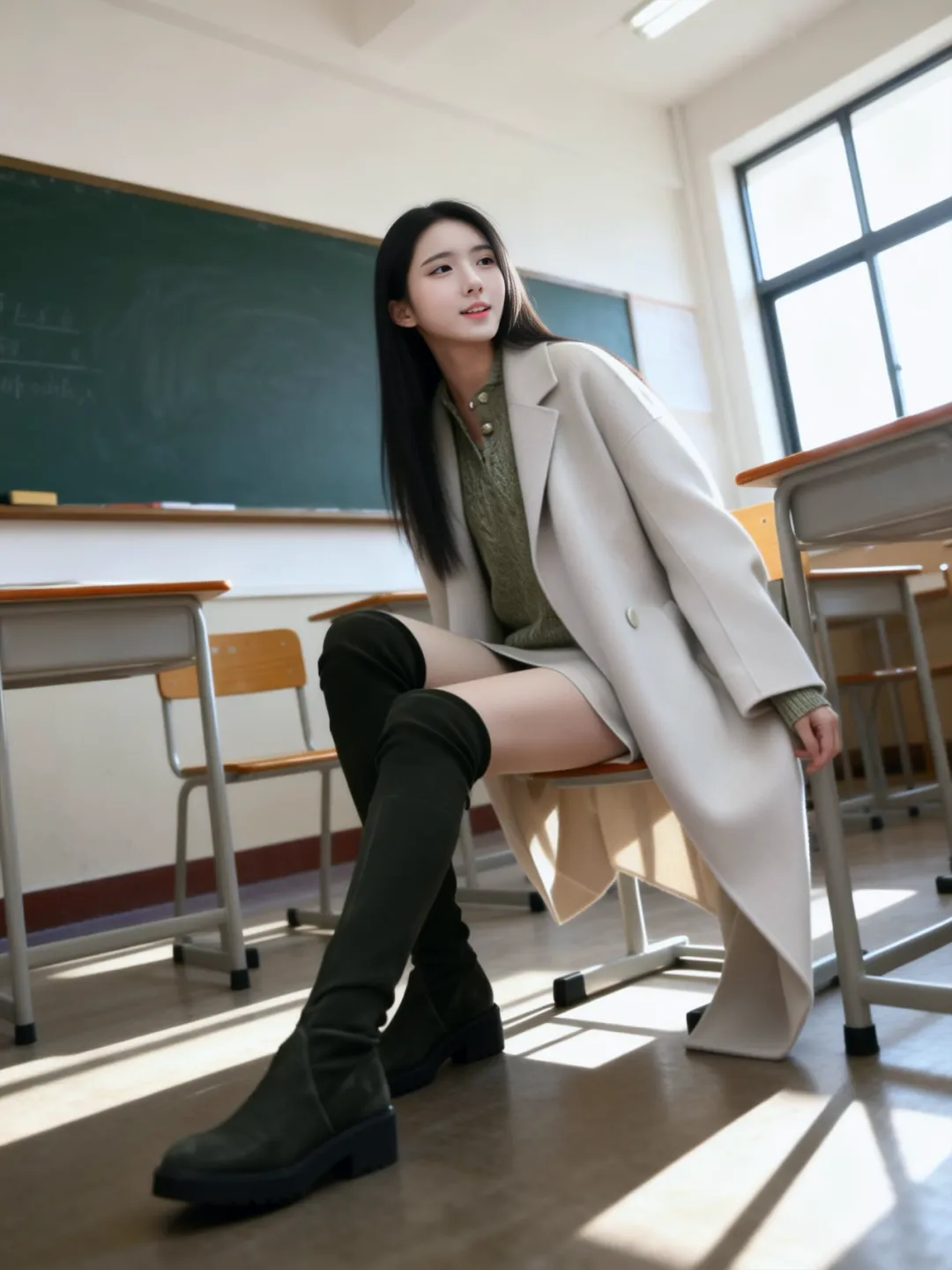晨光漫过教室窗棂时,总有一些身影自带故事感。当长靴的轮廓与课桌椅的木纹重叠,当皮革的细腻触感与书本的油墨气息交融,这双跨越季节的鞋履便成了青春里最灵动的注脚。它不似运动鞋的随性,也不及高跟鞋的锋芒,却在校园的青石板路上走出独特的韵律——每一步都踏着知识的韵律,每一步都踩着年轻的节奏。