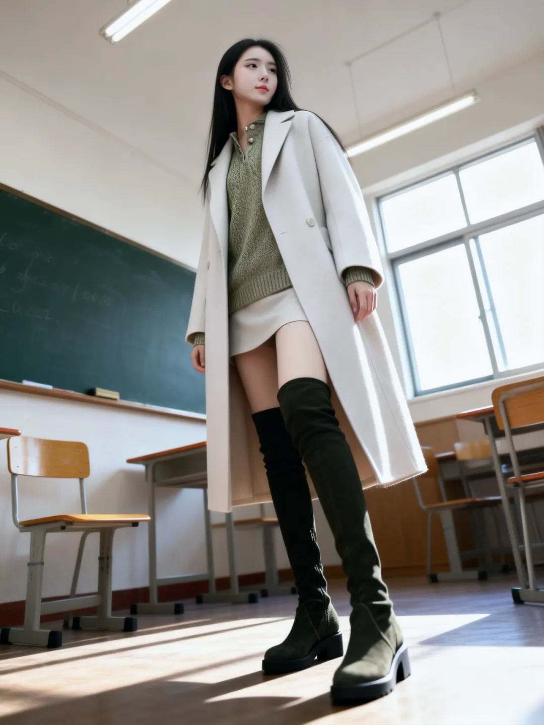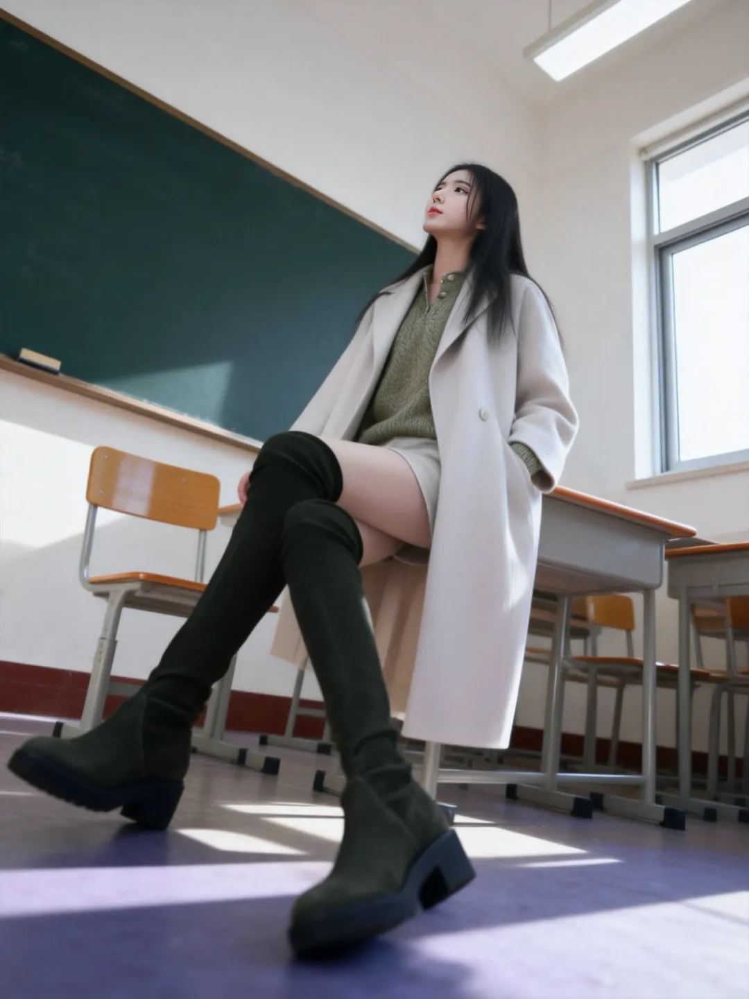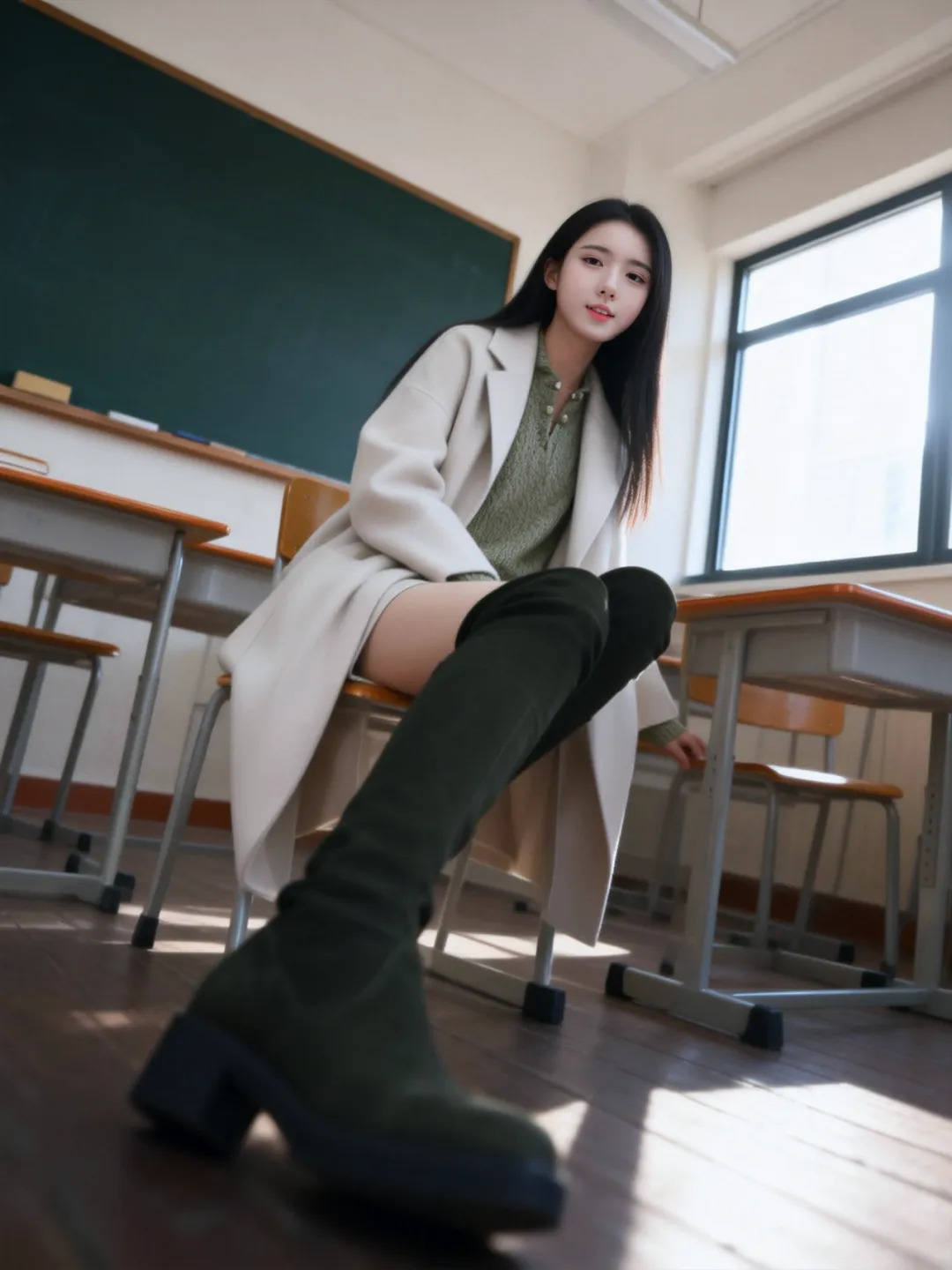 长靴穿搭|教室系列6 过膝长靴 高清写真