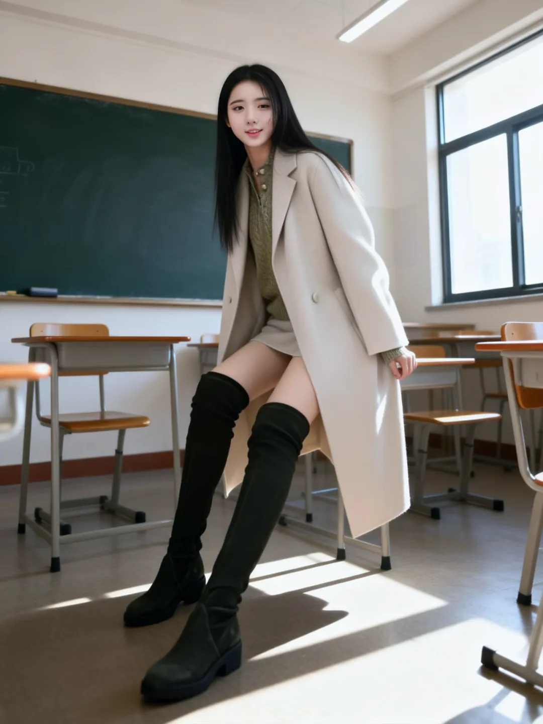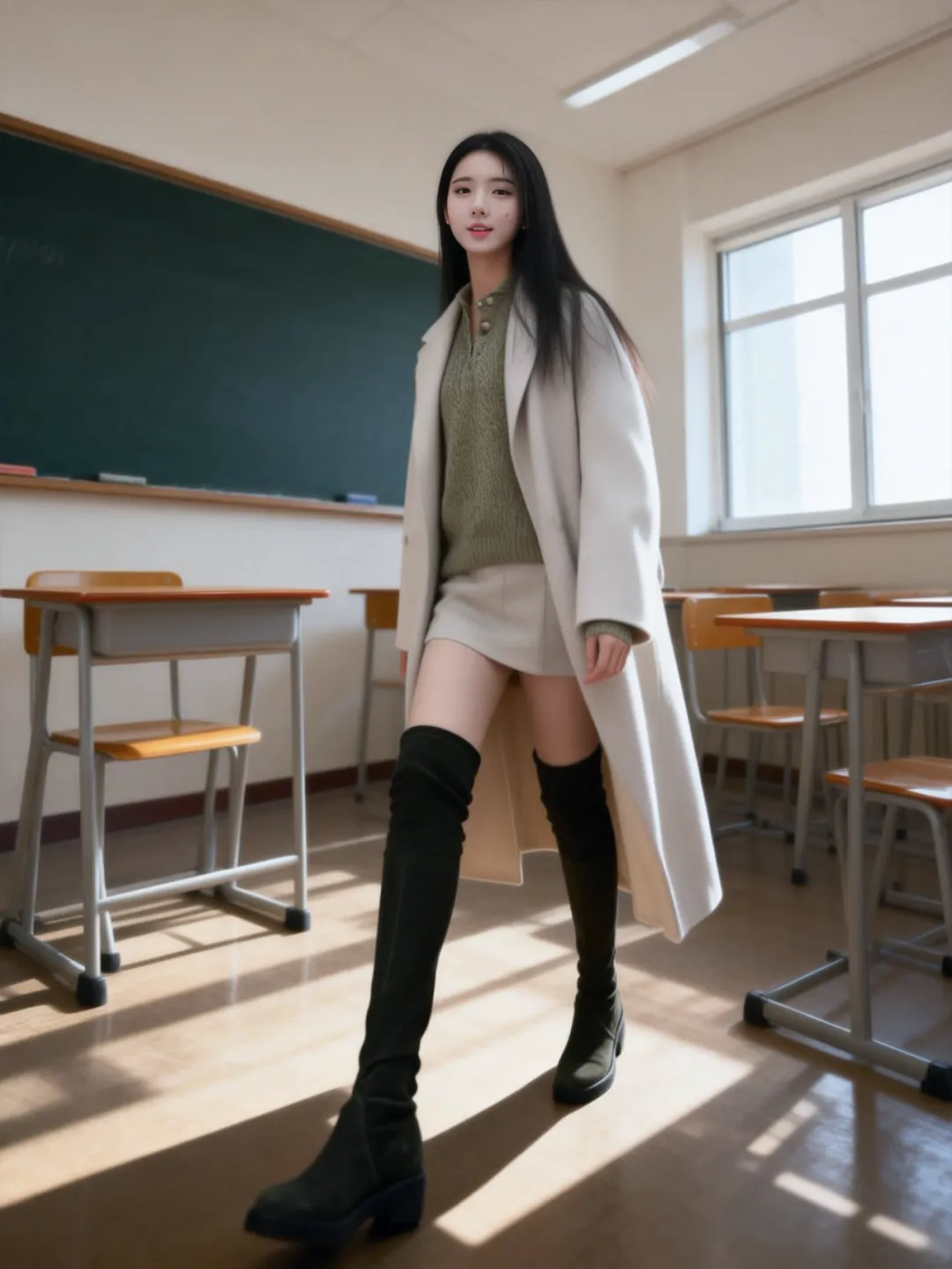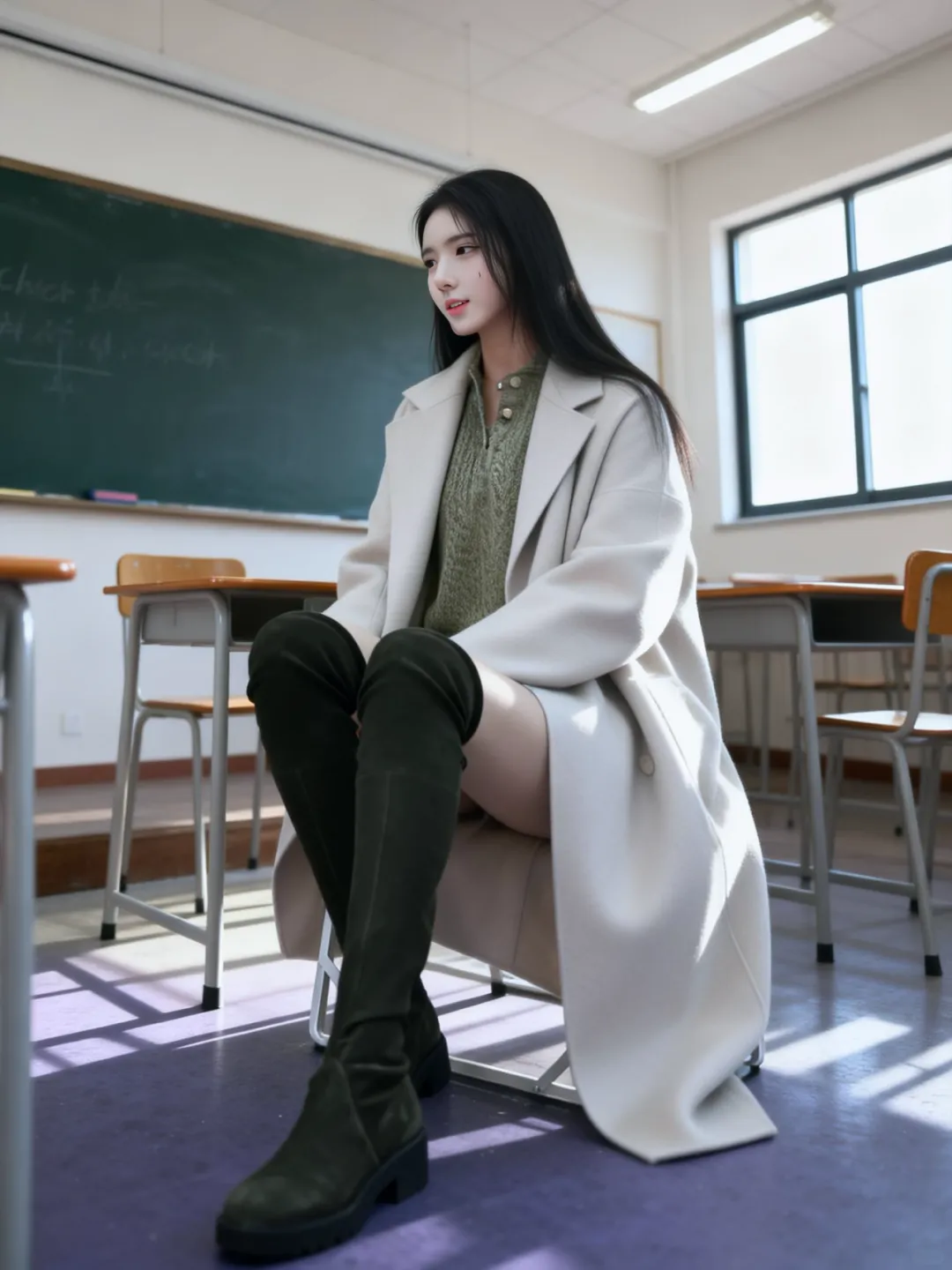 长靴穿搭|教室系列6 过膝长靴 高清写真