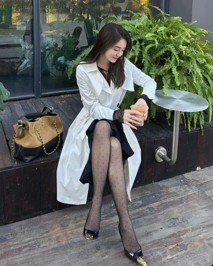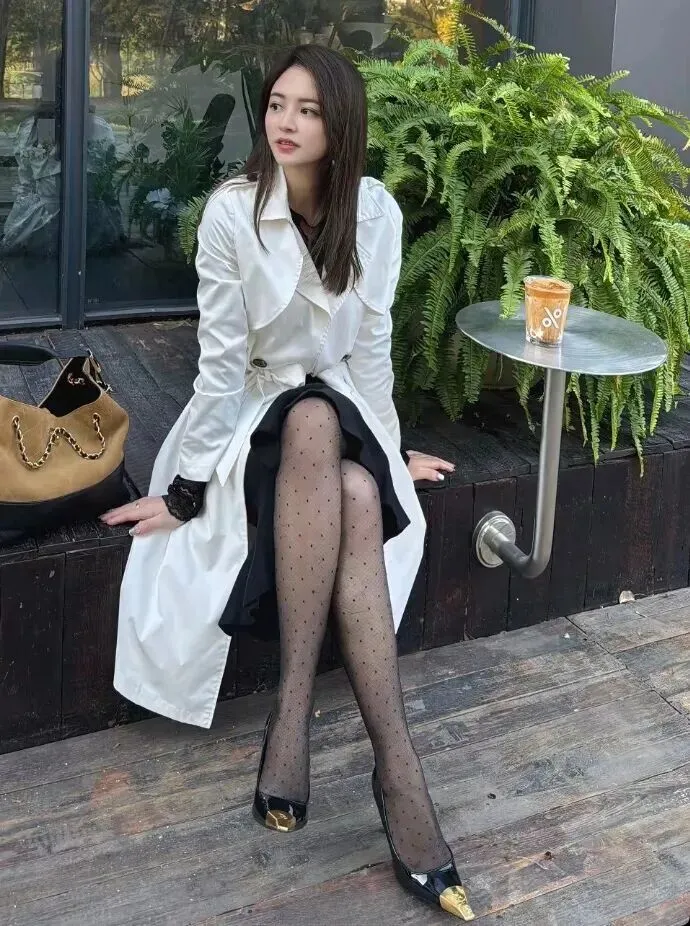 .黑白配色.其实最保.险,但想穿.出彩.,就.得在细节上.下功夫。比.如选有设计.感的.内搭,或.者加点.亮色配.饰。.蕾丝上.衣和波点丝.袜就.是例子,.鞋子.选尖.头款.,能拉.长线条。包.包颜色可.以大.胆点,用亮.色提亮全.身。