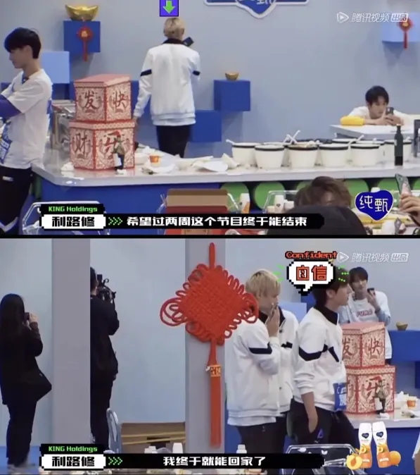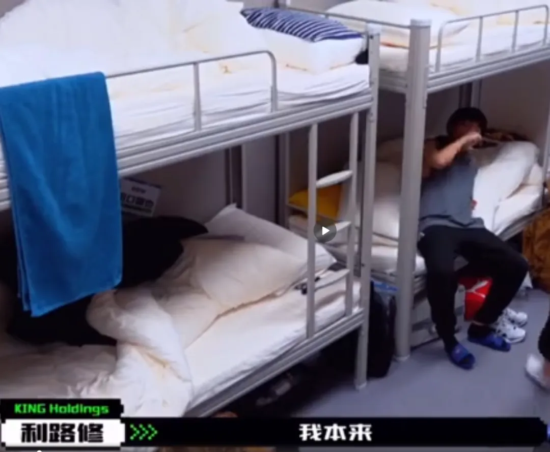 别人在宿舍聊天,为排名而紧张;只有他在一旁划着行李箱,幻想自己下岛后的快乐生活