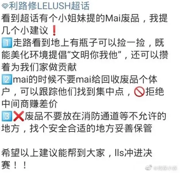 可惜缺德人,缺德魂!为了让利老师留到决赛,广大贫穷笋丝想出了“环保式应援”,填问卷、捡空瓶换钱还是要给他撑腰!