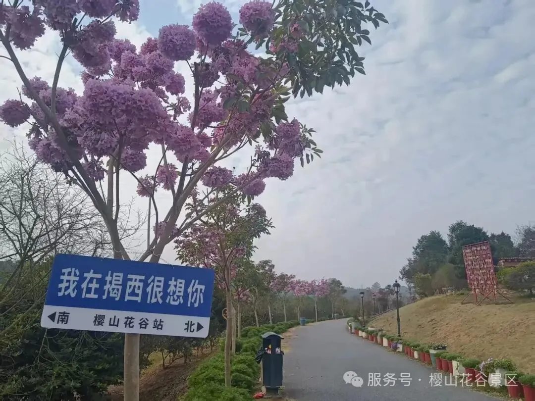 午餐后乘车前往揭西【樱山花谷景区】踏青赏花位于揭西县京溪园镇曾大寮浦池村,是粤东首个以樱花为主题的特色乡村休闲旅游项目。一踏进园区,刻着“樱山花谷”四个每年三四月份是樱花绽放的时节。在樱山花谷景区里,4000多株不同品种的樱花娇艳绽放,数百株10米巨树樱红灿烂,甚是美丽!迎接众多摄影爱好者以及前来游玩的市民,为摄影师们送上颇具特色和魅力的创作题材。在这里不仅可以探春赏花,享受一份怡然自得的慢生活,十分轻松自在。