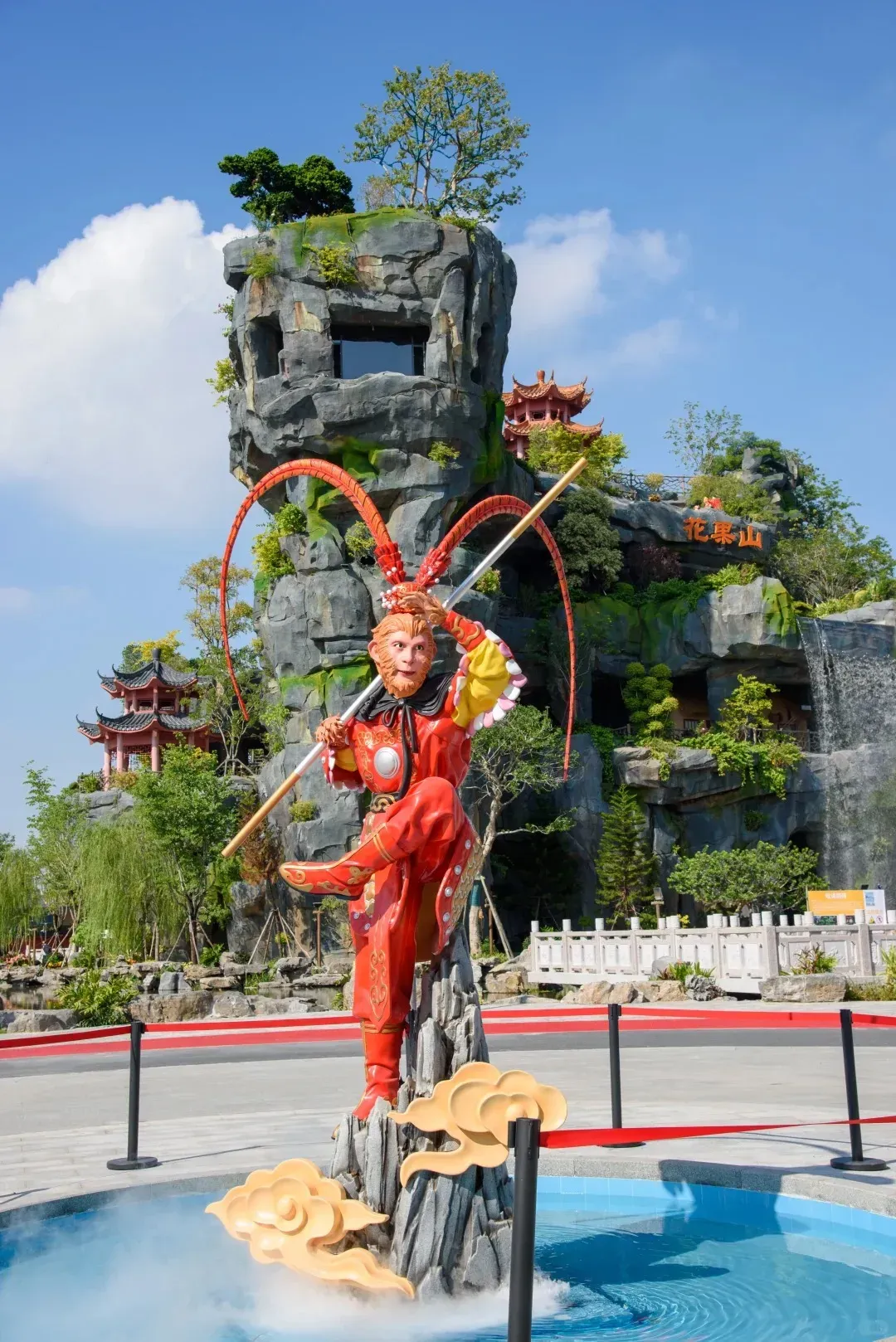 请各位贵宾于早指定时间指定地点集合,请于早上指定时间地点集 合,乘旅游车前往潮州【潮人公园】,占地面积约400亩,拟投资约4亿元,2023年6月开工。涵盖步行街区、花果山湿地景观区、花海区、中心广场区、植物迷宫区、阳光大草坪区、老年及儿童活动区、游泳区、停车区等9个区域,共包含24个项目。潮人公园以潮州大桥为轴,划分南北两大片区,涵盖20余个特色项目。桥北区聚焦文化体验与市井烟火。花果山(外观,门票自理)以《西游记》神话场景打造沉浸式游园,步行街汇聚66间商铺,潮州美食、陶瓷精品、文创市集等应有尽有。桥南区则主打生态科技与休闲娱乐,植物迷宫曲径通幽,水晶楼光影交错,儿童乐园与长者休闲区满足全年龄段的需求。
