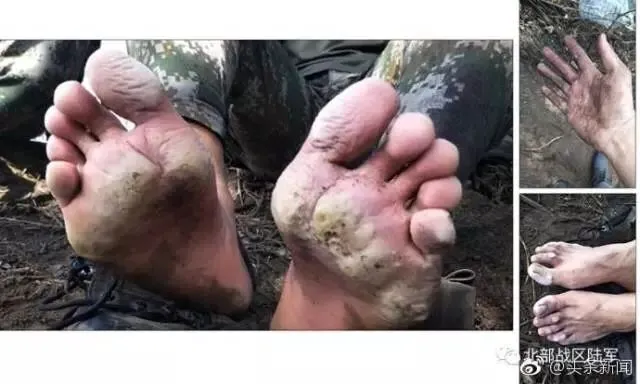 近日,网友@-四分三十三秒- 在微博上发布了一张照片,名叫“救火后”。图中,是两双“泡烂”了的脚和一只沾满泥泞的粗糙的手。