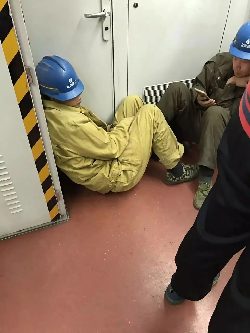 早晨六七点钟的时候人还不算太多。左边的这个男人一直坐在角落休息,像是睡着了,但每当地铁门开了,风吹进来的时候,他总又不禁缩了缩身子。看着他疲惫的样子,我心里也不免有些难过……其实,每个在早高峰前便登上地铁的人,都不容易吧。