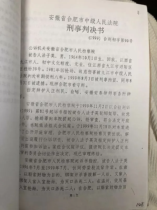 法子英生于1964年10月1日,江西九江人,在家排行老七,上面有三个哥哥和三个姐姐,因此得一外号“法老七”。案卷资料显示,法子英的父亲在其归案时就已身故,当时他已成家,且育有一女,年方9岁。此外,据法子英供述,其6个哥哥姐姐均在当地事业单位任职。不过,自他出事直至判刑枪决,法家任何一人都未曾出面。