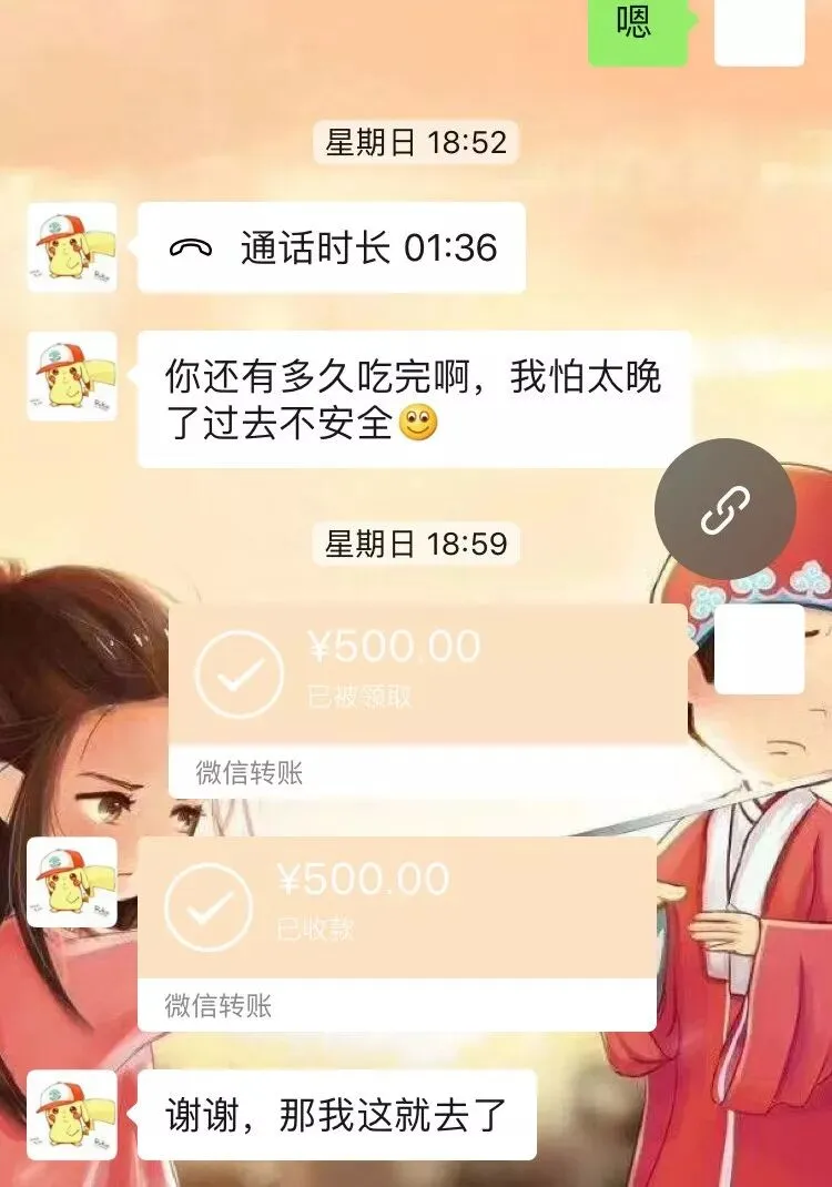 一开始,思莲说自己没钱买火车票,贴心的许某马上发了一个300元的微信红包给她。但思莲表示还是不够路费,许某又转给她450元。这一次的转账,许某按照思莲的吩咐,转到了她“闺蜜”的微信上。