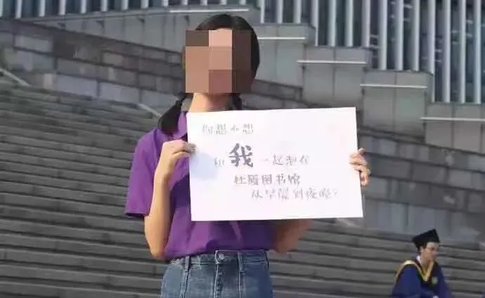 轻貌美的女大学生站在图书馆前,举着“你想不想让我成为你的青春”“你想不想和我一起泡在图书馆,从早晨到夜晚”的招牌,呼吁大家报考。