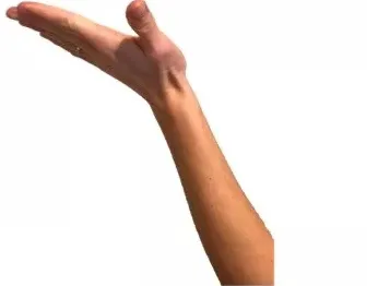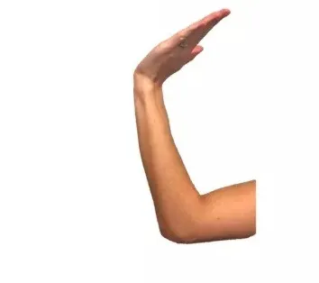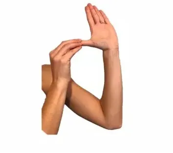 • 保持相同姿势,转动手腕,让手掌远离你;