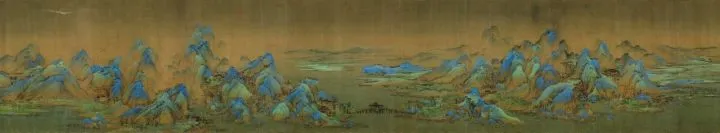 《千里江山图》画长达11.9米,宽51.5厘米,以一幅完整的绢幅表现千里江山壮阔之景。它的作者王希孟,是一位在画史文献中没有任何记载的北宋宫廷画家,一位身世扑朔迷离的山水画家。他18岁时,仅仅用半年时间,便绘就了《千里江山图》,这既是他唯一的传世作品,也是存世青绿山水画中最具代表性和里程碑意义的作品。
