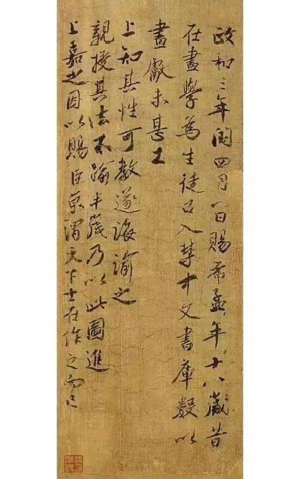 徽宗本人,除了个别的水墨画之外,画迹和代笔之作多数是用重色,十分鲜亮明丽。他“诲谕”王希孟画《千里江山图》卷,是为了提振青绿山水、特别是要开创大青绿山水的绘画语言。