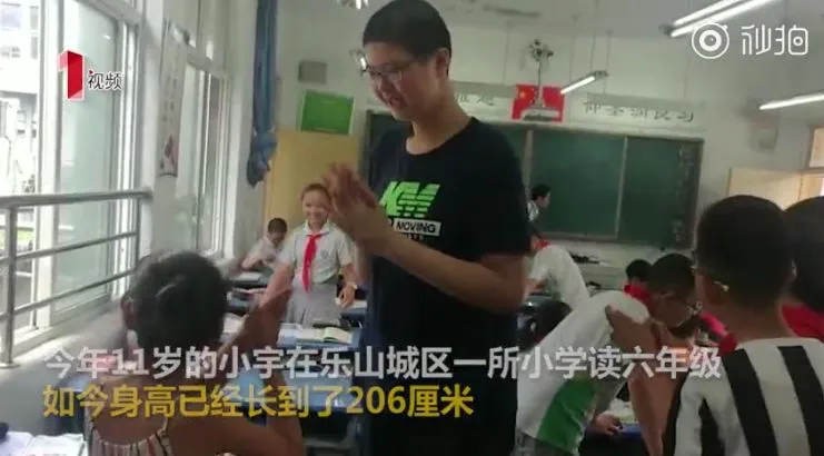 四川乐山的11岁小学生小宇已经长到了206厘米高。他最初被怀疑是巨人症,但检查结果却一切正常。小宇家人表示,如果小宇愿意,他们将考虑申请吉尼斯世界记录。