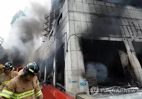 火灾现场。图片来源:韩联社
