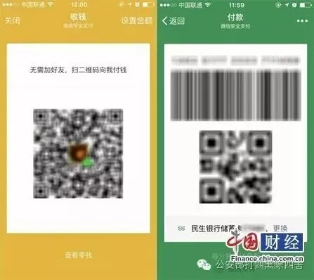 微信在设计支付时,设置了两个二维码:收款码付款码