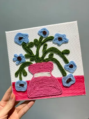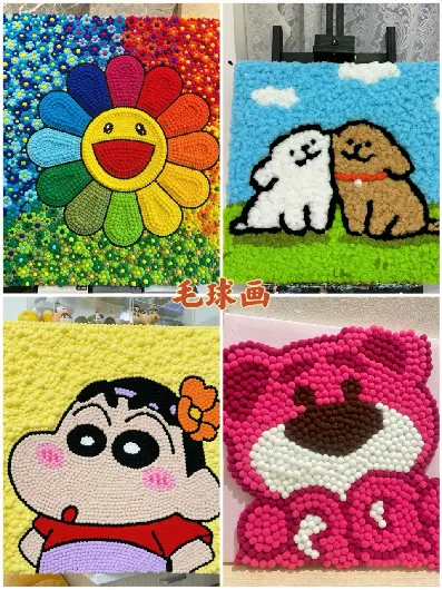 毛线装饰画,用彩色毛线在画框内编织出各种图案的艺术,用毛线编织出来的物品不仅实用,而且美观。