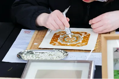 珍珠画,是以天然珍珠或人造珍珠为材料,通过粘贴、镶嵌等工艺创作的装饰画,珍珠的圆润光泽赋予画面立体感和奢华感。